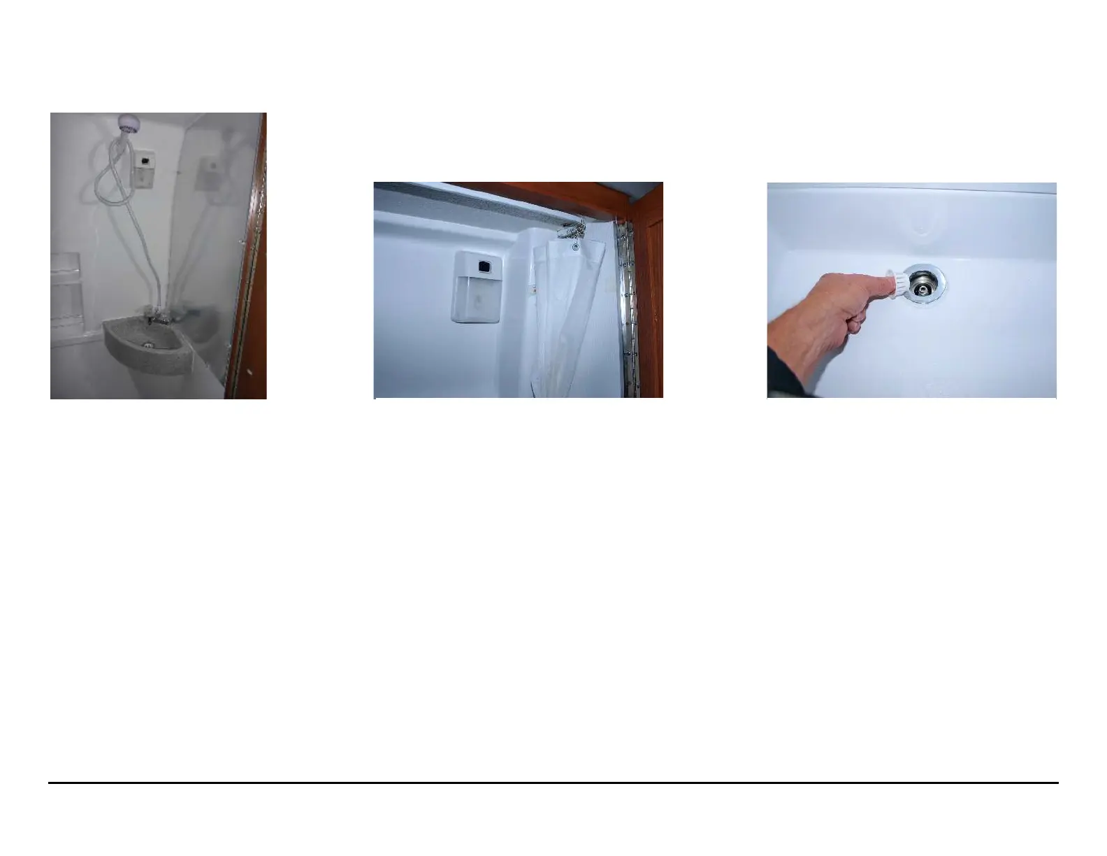 To take a shower, unscrew the drain stopper in the center of the bathroom floor. (Picture 24.3) Release the hook and loop fastener straps retaining