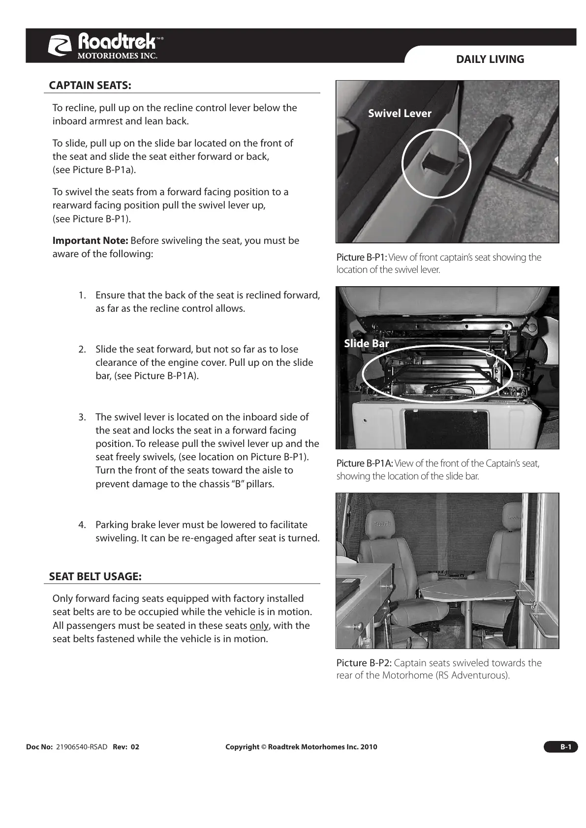 Doc No: 21906540-RSAD Rev: 02 Copyright © Roadtrek Motorhomes Inc. 2010 B-1