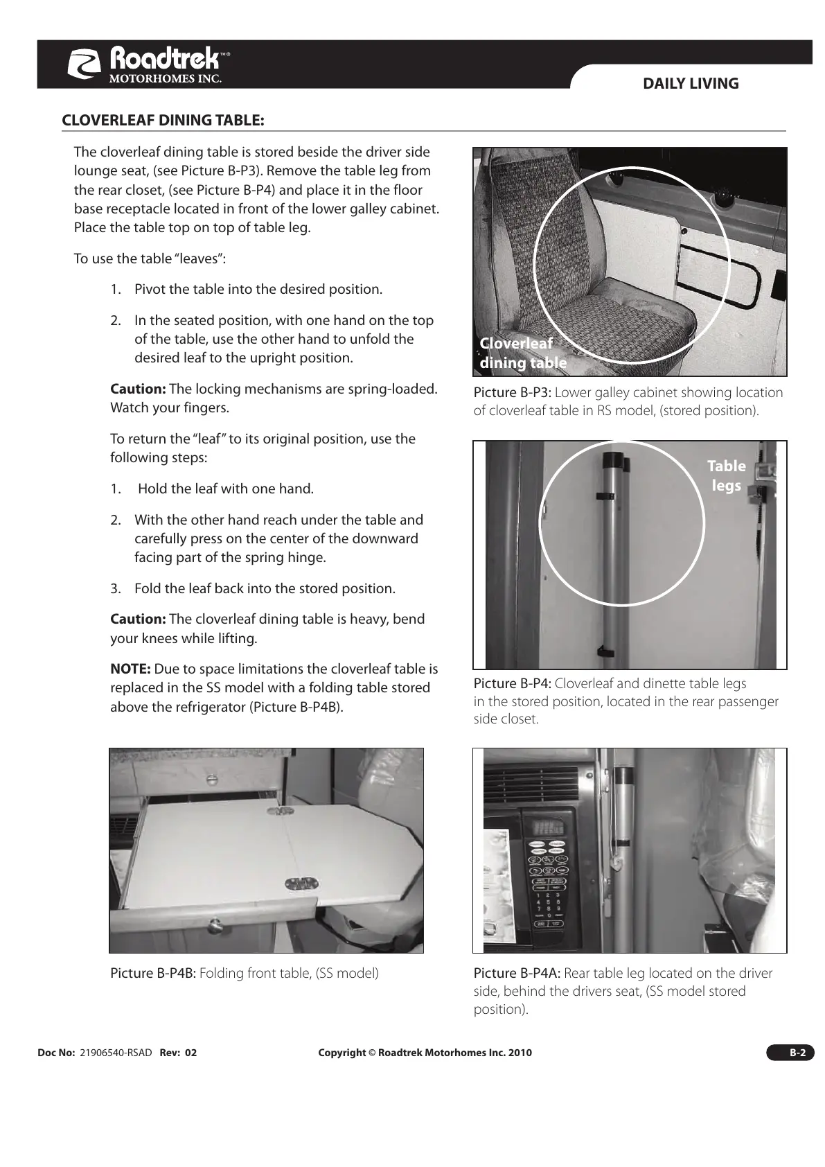 Doc No: 21906540-RSAD Rev: 02 Copyright © Roadtrek Motorhomes Inc. 2010 B-2