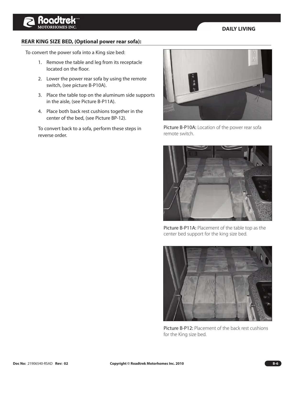 Doc No: 21906540-RSAD Rev: 02 Copyright © Roadtrek Motorhomes Inc. 2010 B-6