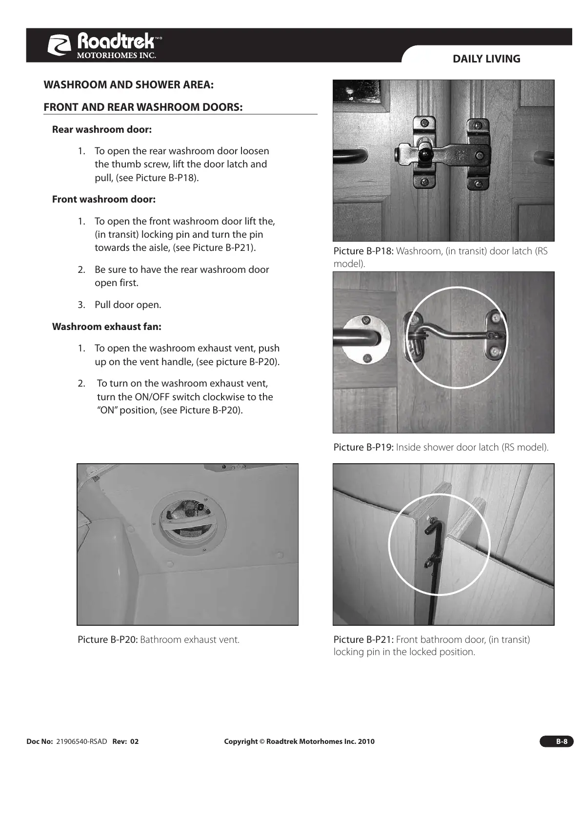 Doc No: 21906540-RSAD Rev: 02 Copyright © Roadtrek Motorhomes Inc. 2010 B-8