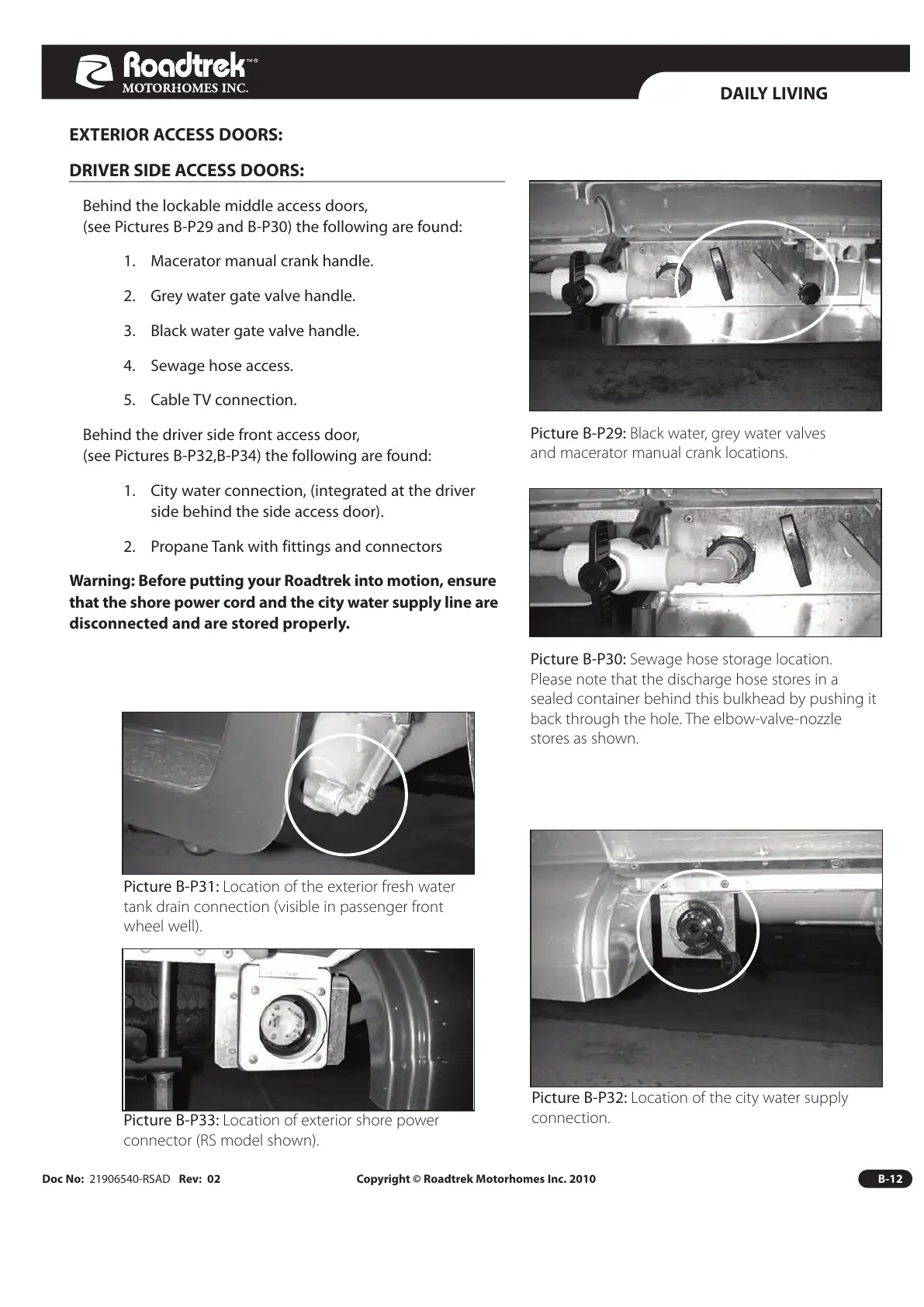 Doc No: 21906540-RSAD Rev: 02 Copyright © Roadtrek Motorhomes Inc. 2010 B-12