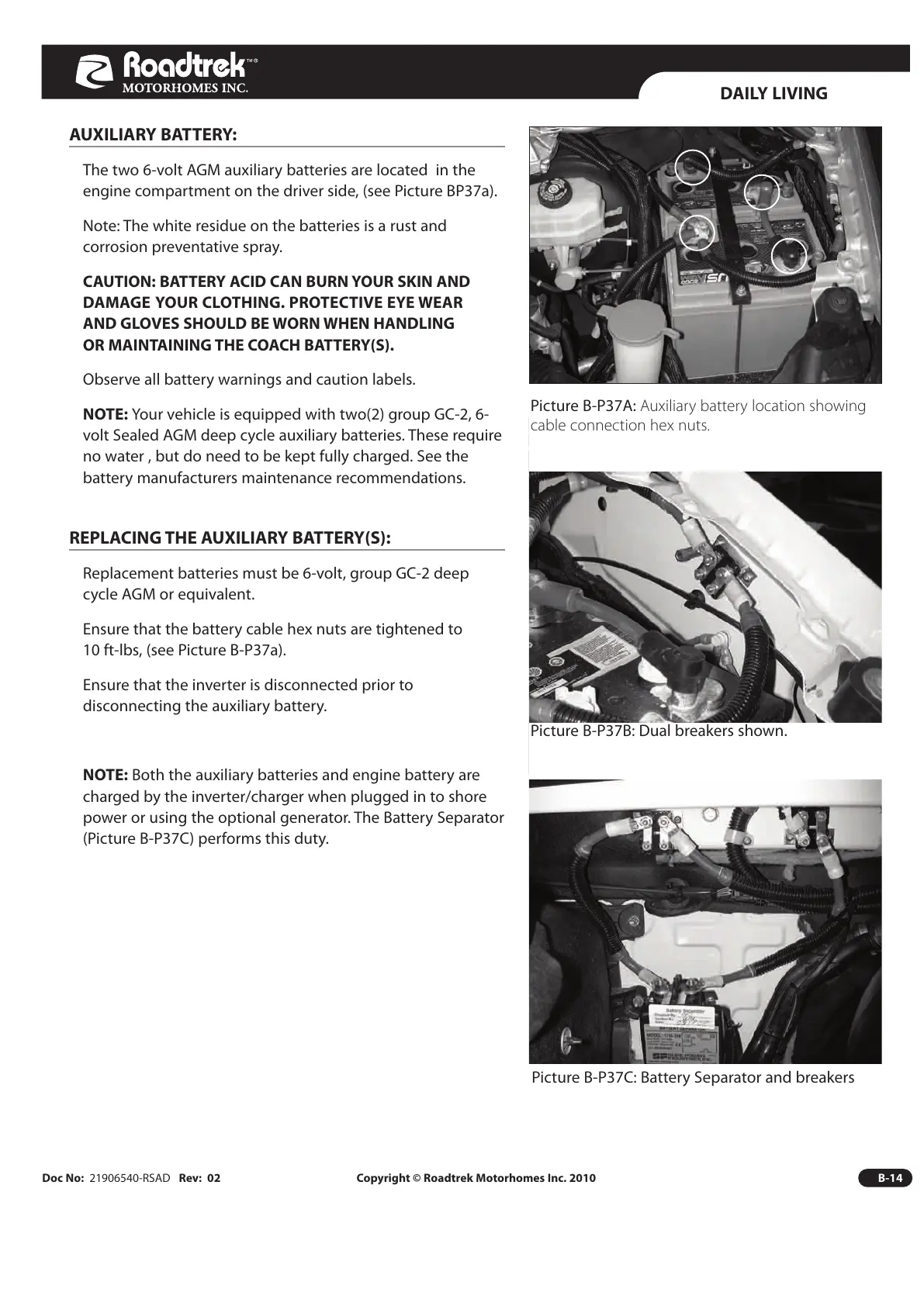 Doc No: 21906540-RSAD Rev: 02 Copyright © Roadtrek Motorhomes Inc. 2010 B-14