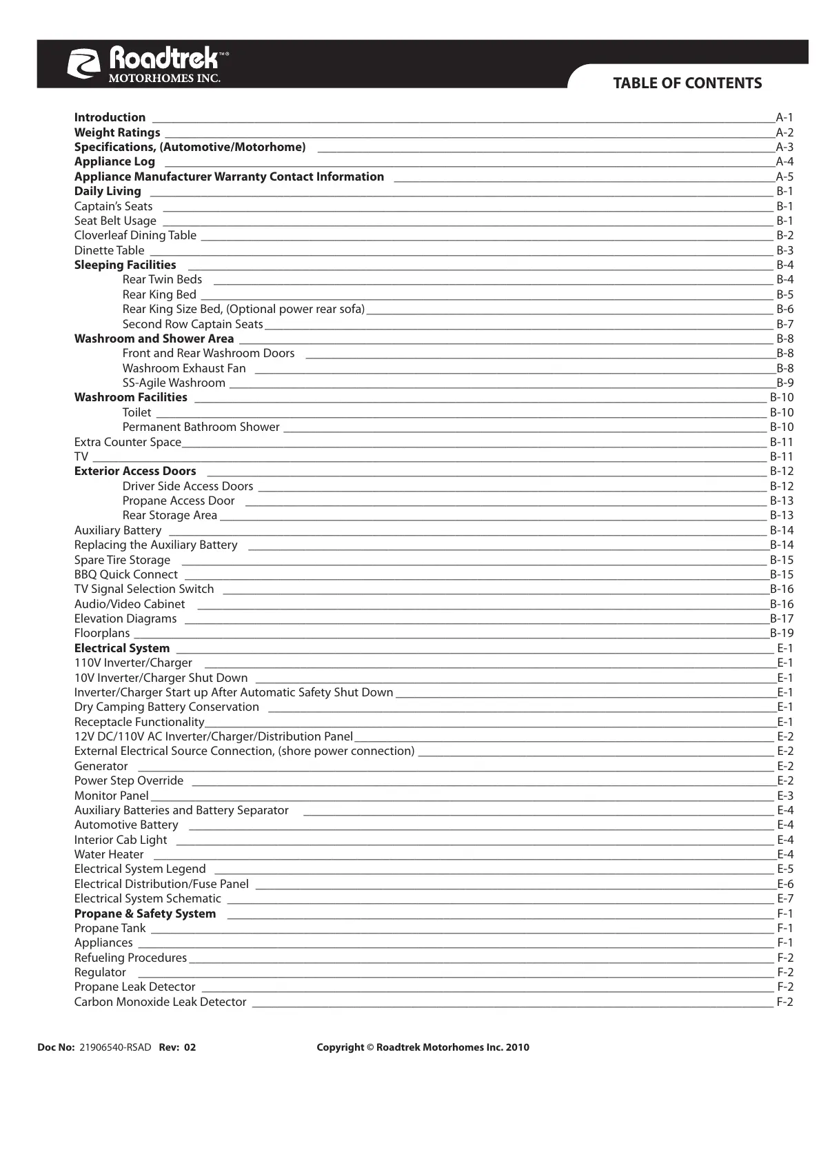 Doc No: 21906540-RSAD Rev: 02 Copyright © Roadtrek Motorhomes Inc. 2010 B - 1