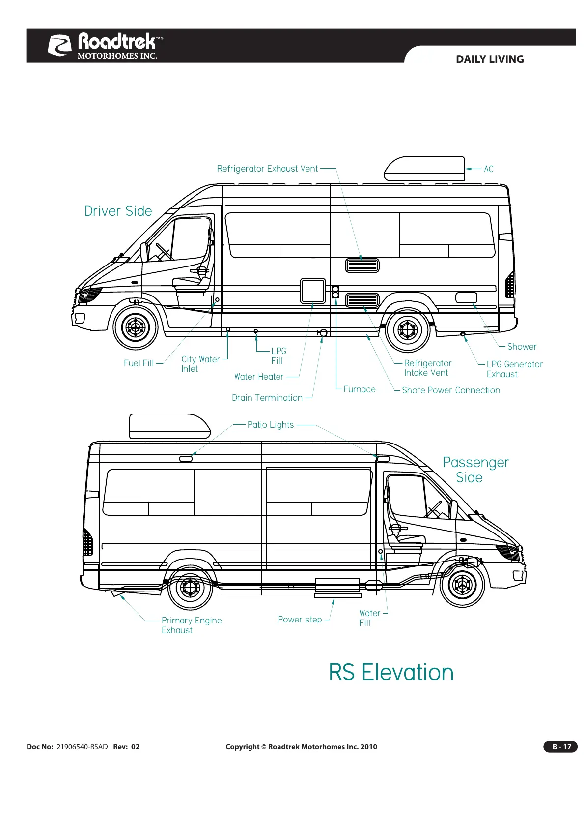 Doc No: 21906540-RSAD Rev: 02 Copyright © Roadtrek Motorhomes Inc. 2010 B - 17