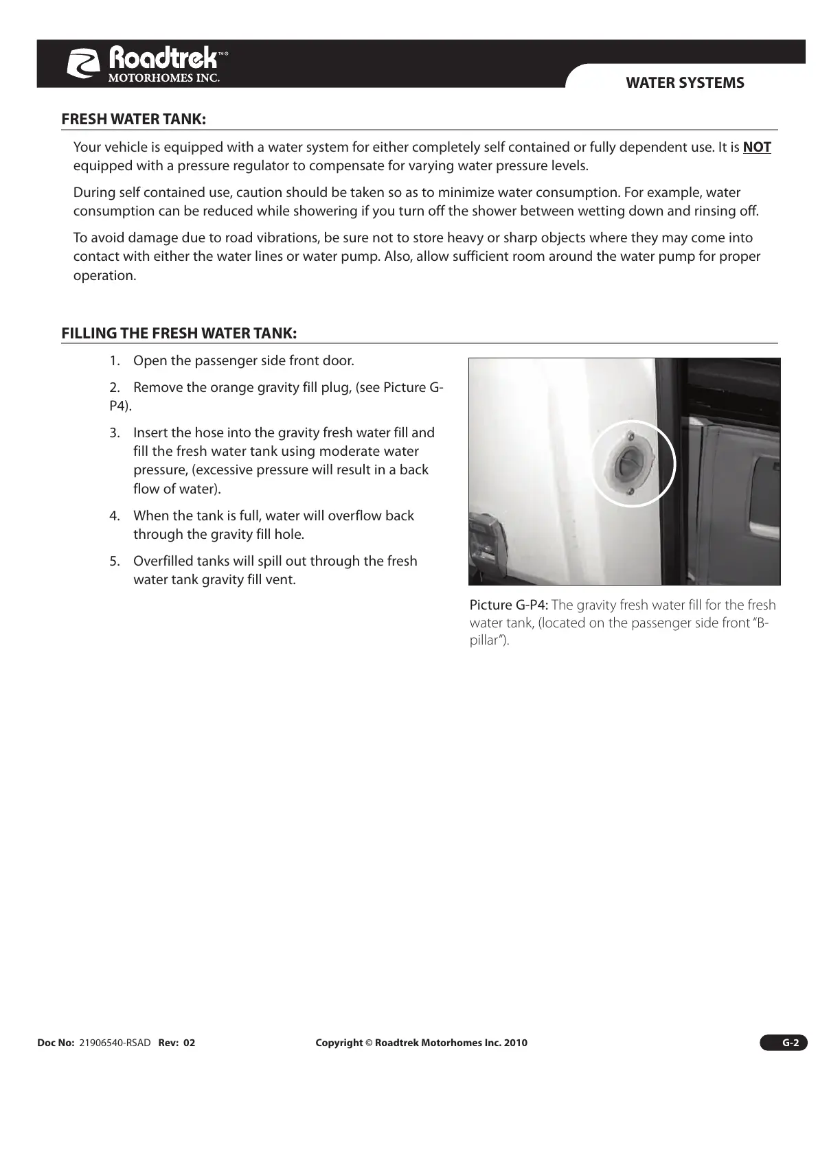 Doc No: 21906540-RSAD Rev: 02 Copyright © Roadtrek Motorhomes Inc. 2010 G-2