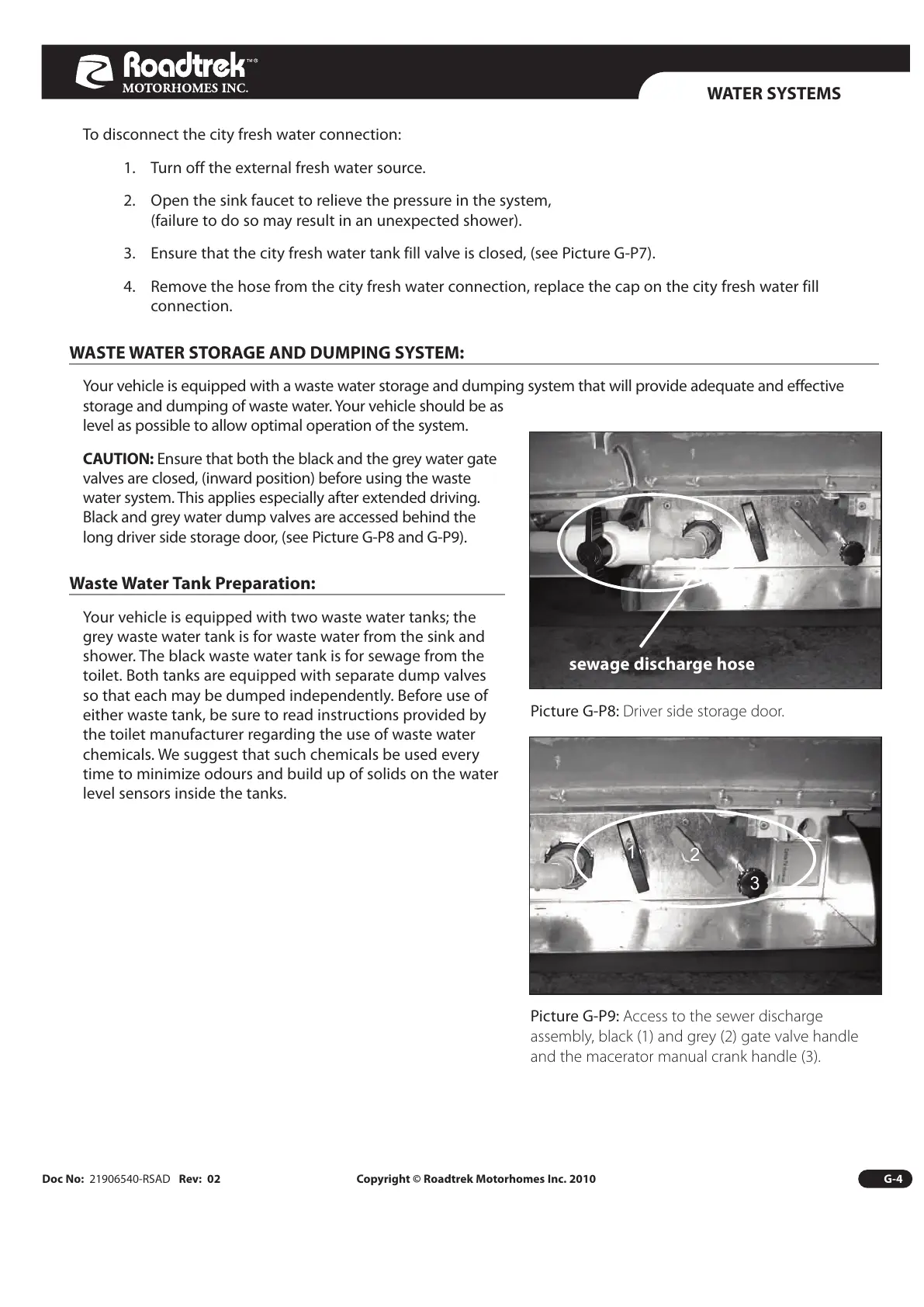 Doc No: 21906540-RSAD Rev: 02 Copyright © Roadtrek Motorhomes Inc. 2010 G-4