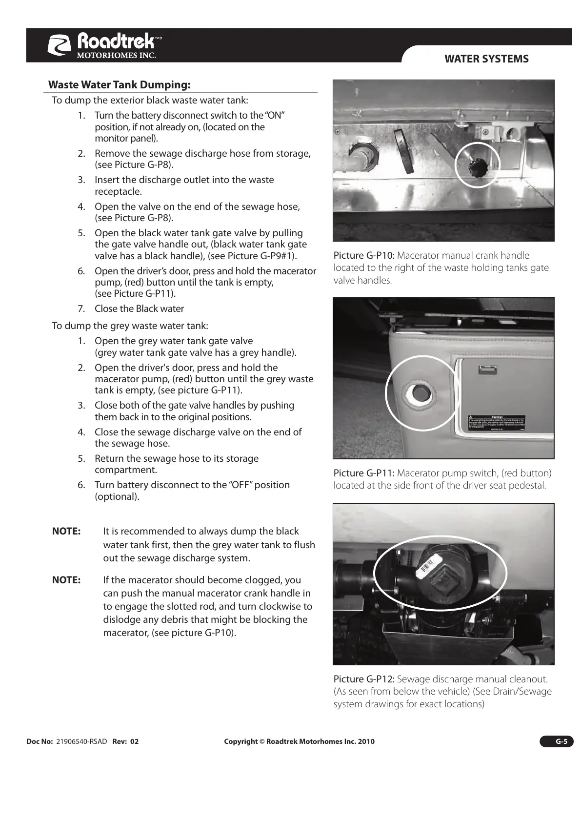 Doc No: 21906540-RSAD Rev: 02 Copyright © Roadtrek Motorhomes Inc. 2010 G-5