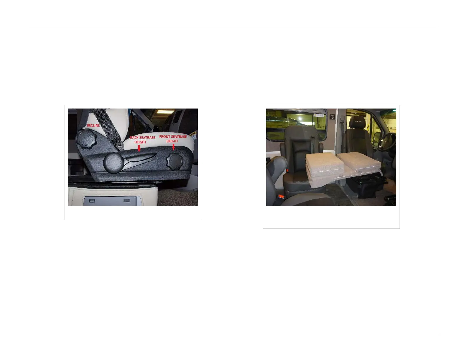 The captain seats located at the front of the vehicle can be configured into single bed arrangements with the optional folding