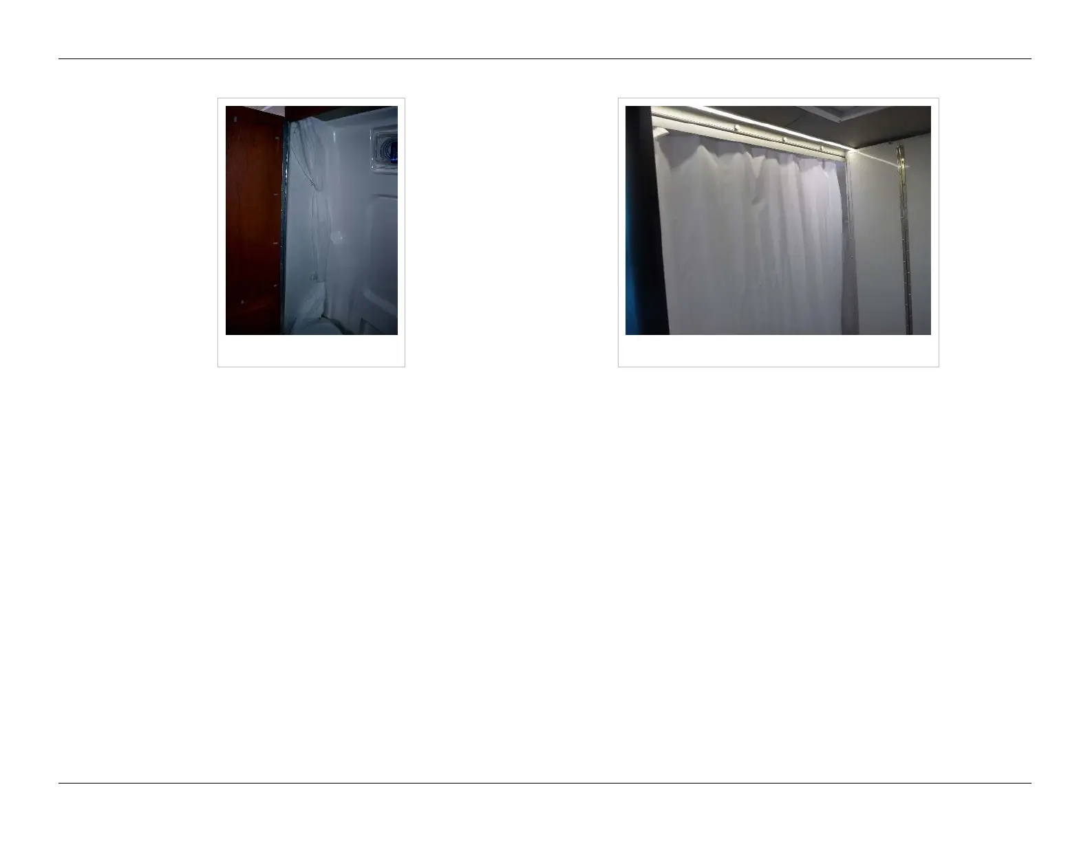 Shower curtain stowed Shower curtain open
