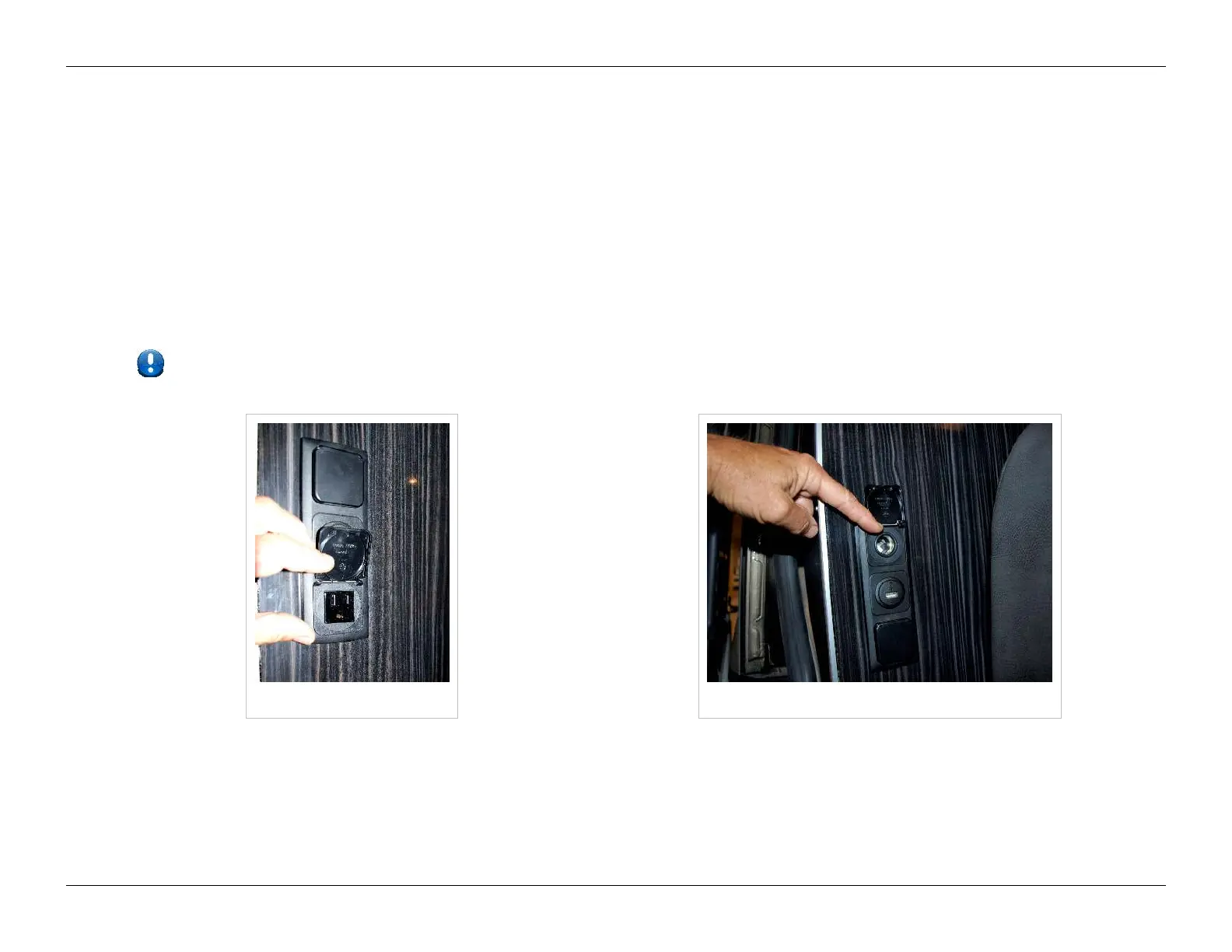 Roadtrek. If you have no power at an outlet, check to make sure the rocker switch or touch screen is correctly positioned.