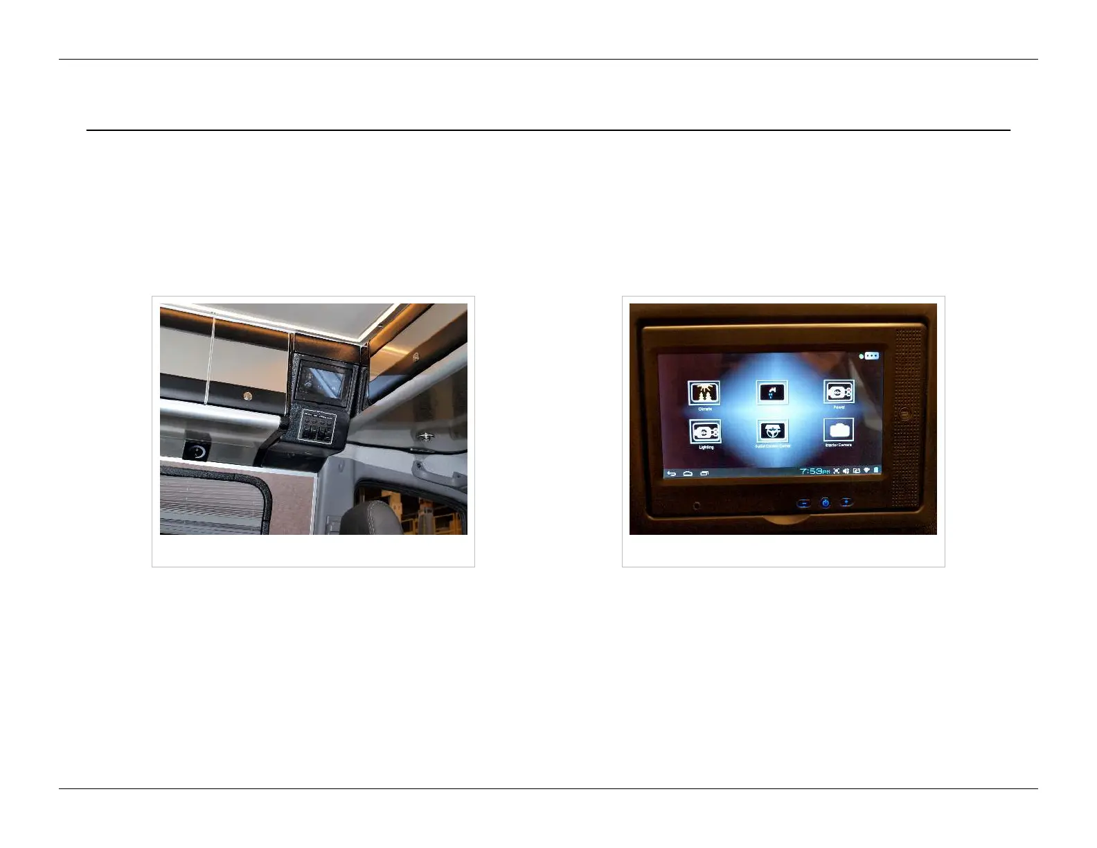 The touch screen panel allows you to monitor and control the different systems of your Roadtrek. When the system is