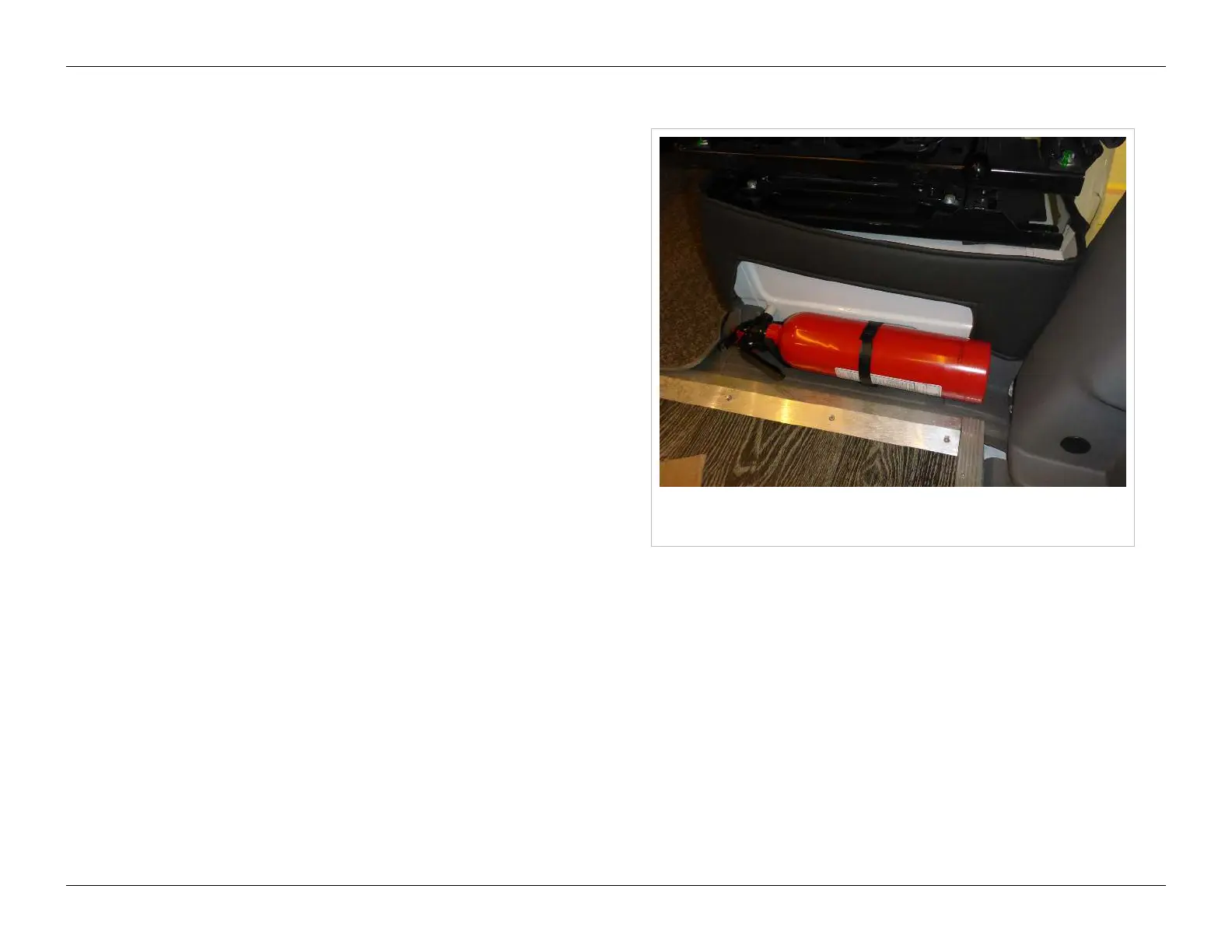 Fire extinguisher located behind passenger side front
