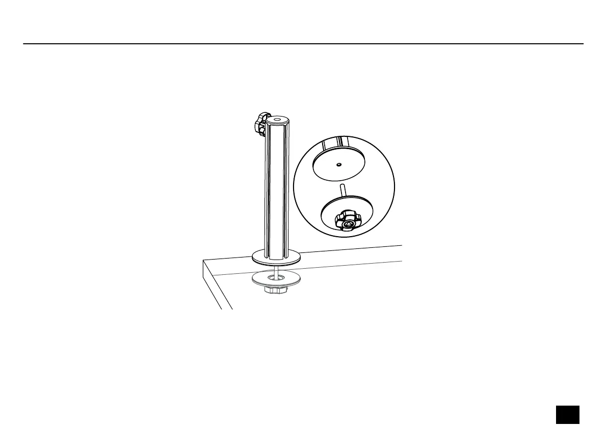 Loosen the locking screw and place the stand in the recess of the desktop. Tighten the locking screw.