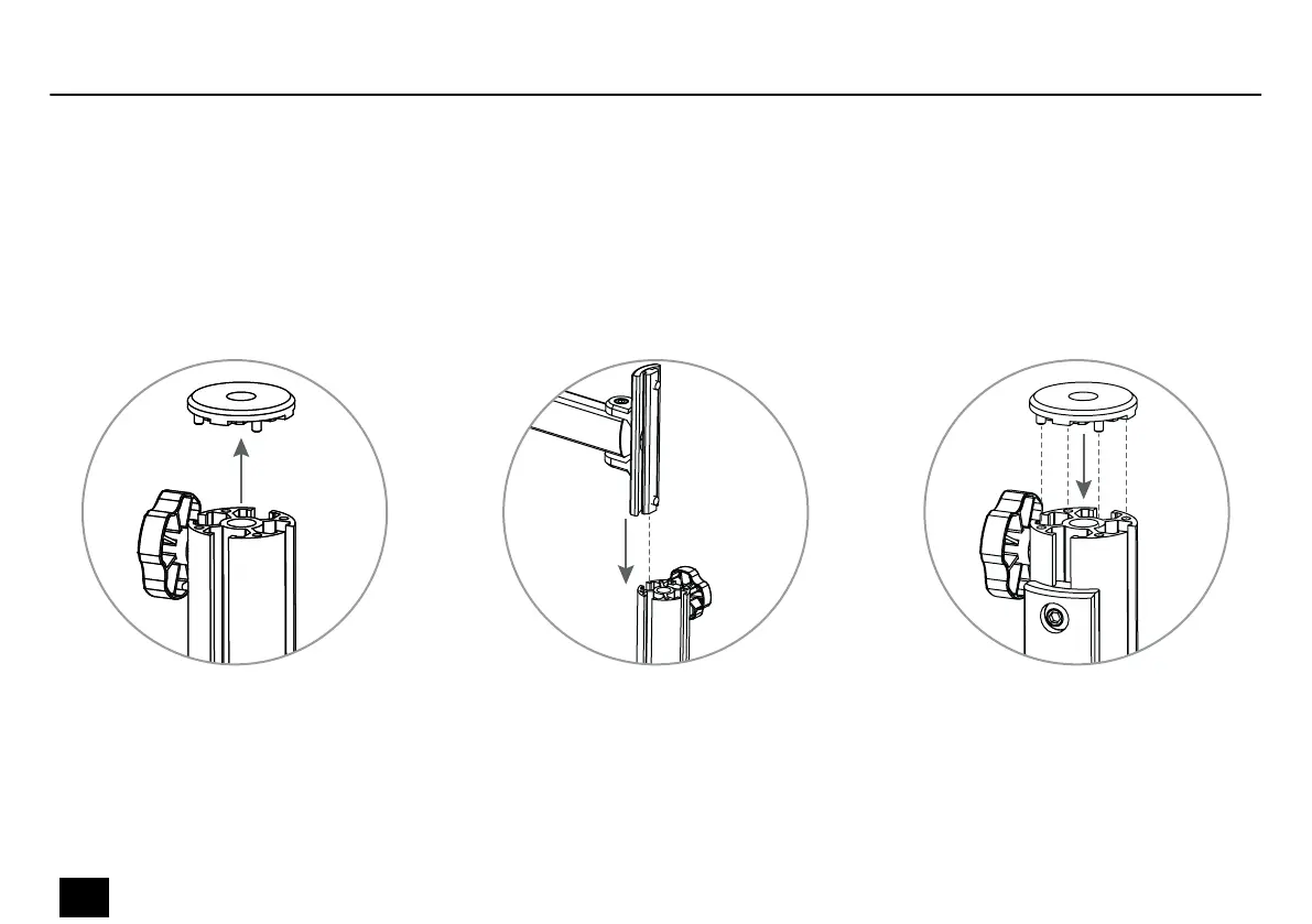 Slide the arm or the holder from the top in the recess of the desktop stand. Adjust the desired arm height and tighten the Allen