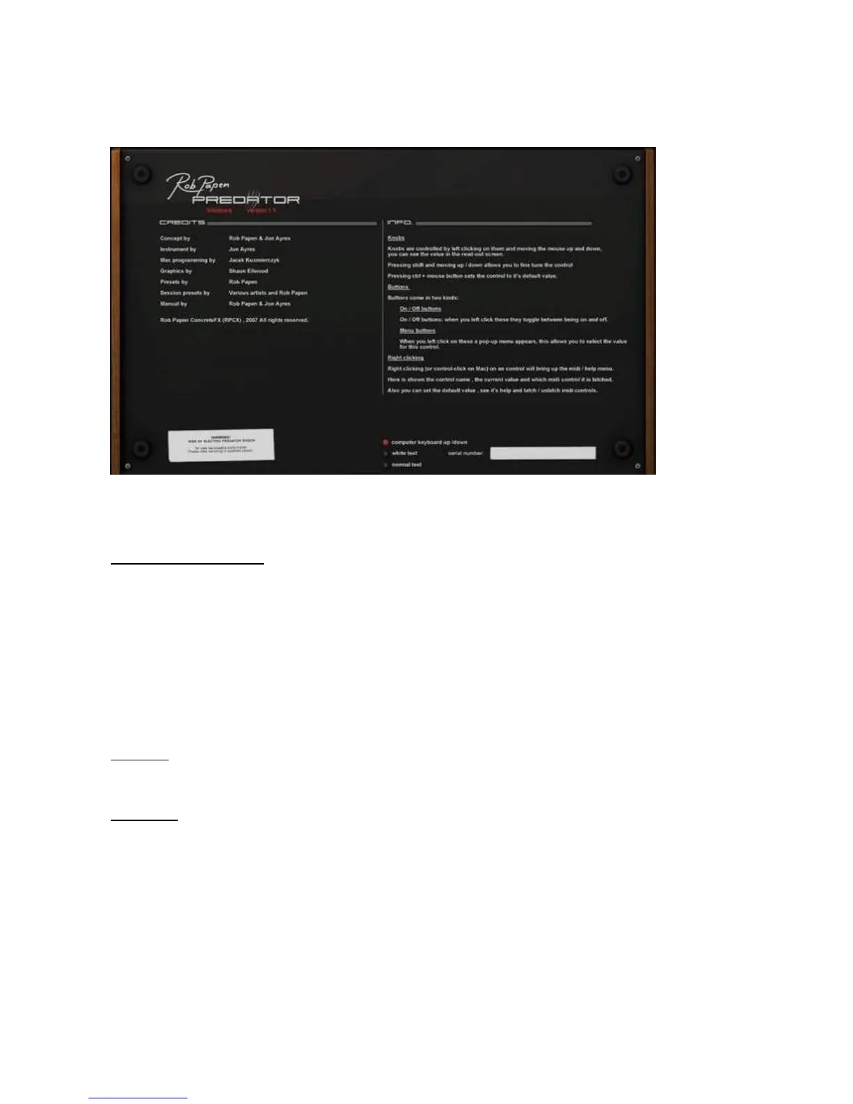 his is where you can read the credits and info on controls.
