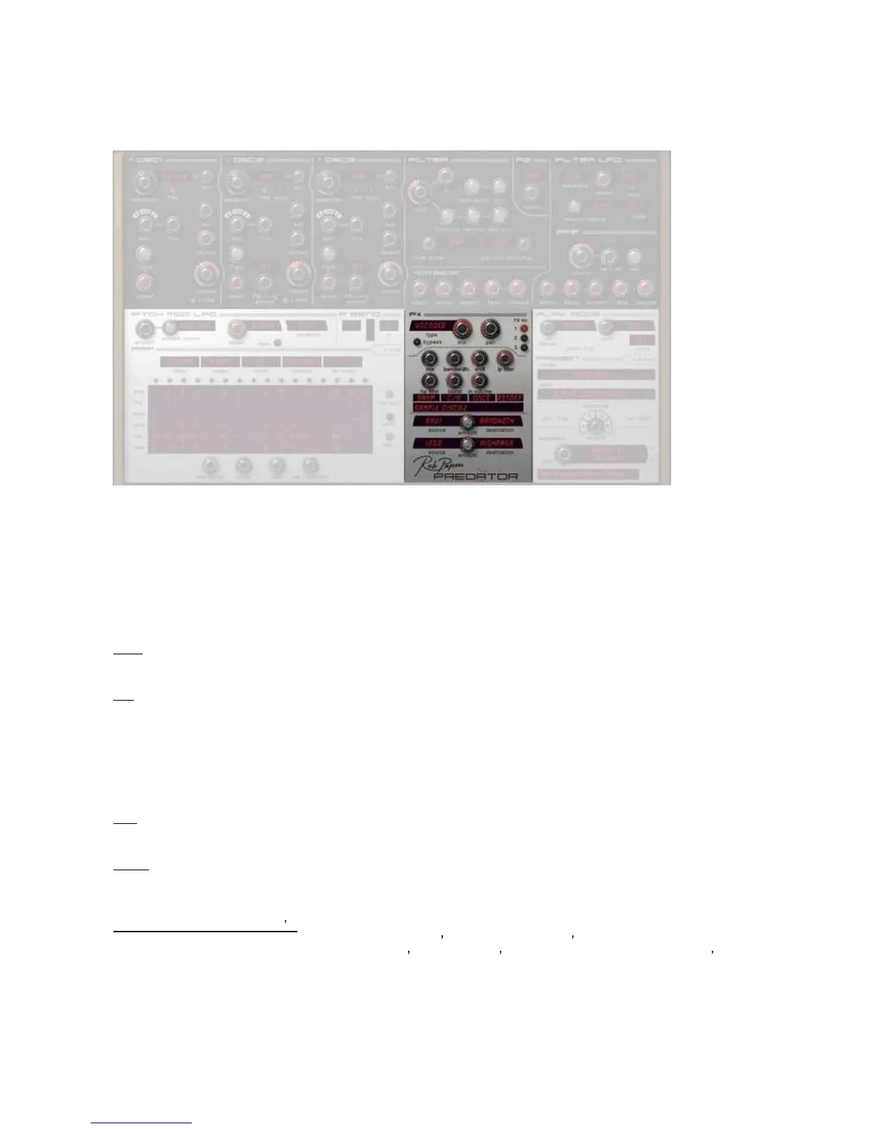 modulation source. The quality of the Fx section is so good that we have created PredatorFX as a fx version
