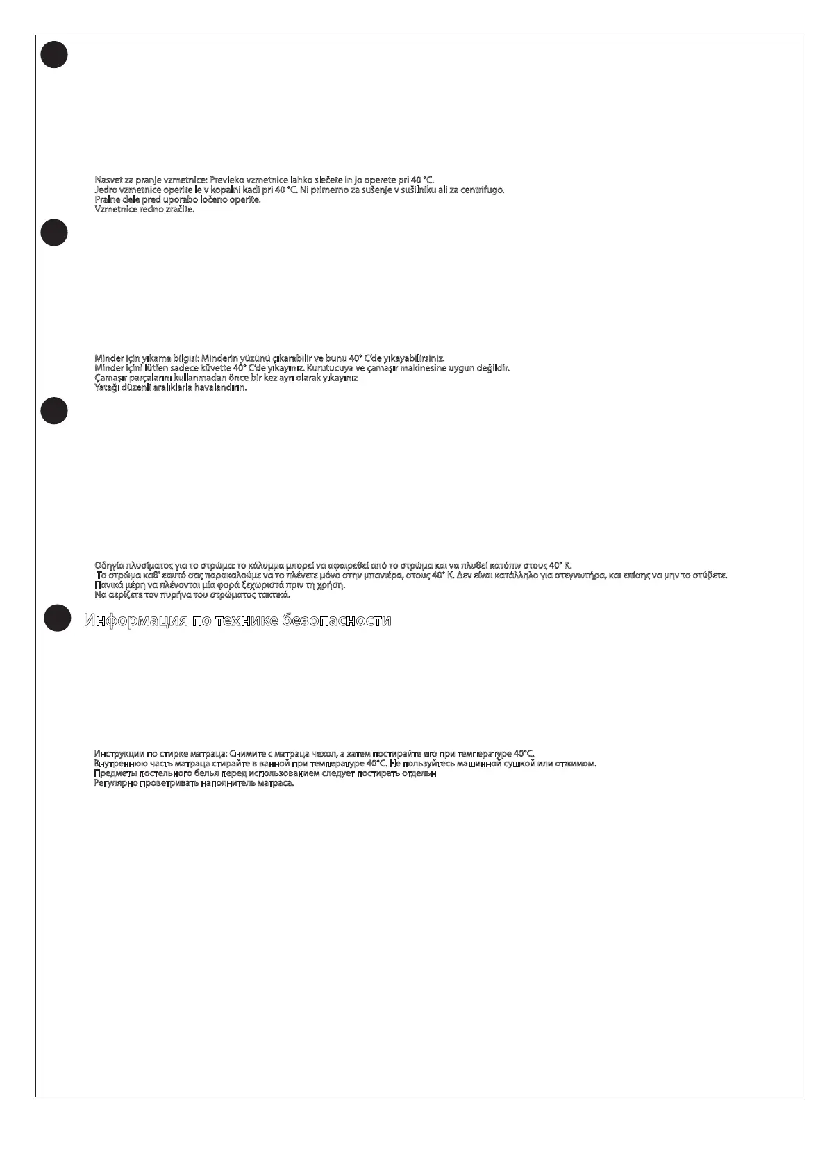 Инструкции по стирке матраца: Снимите с матраца чехол, а затем постирайте его при температуре 40°C.