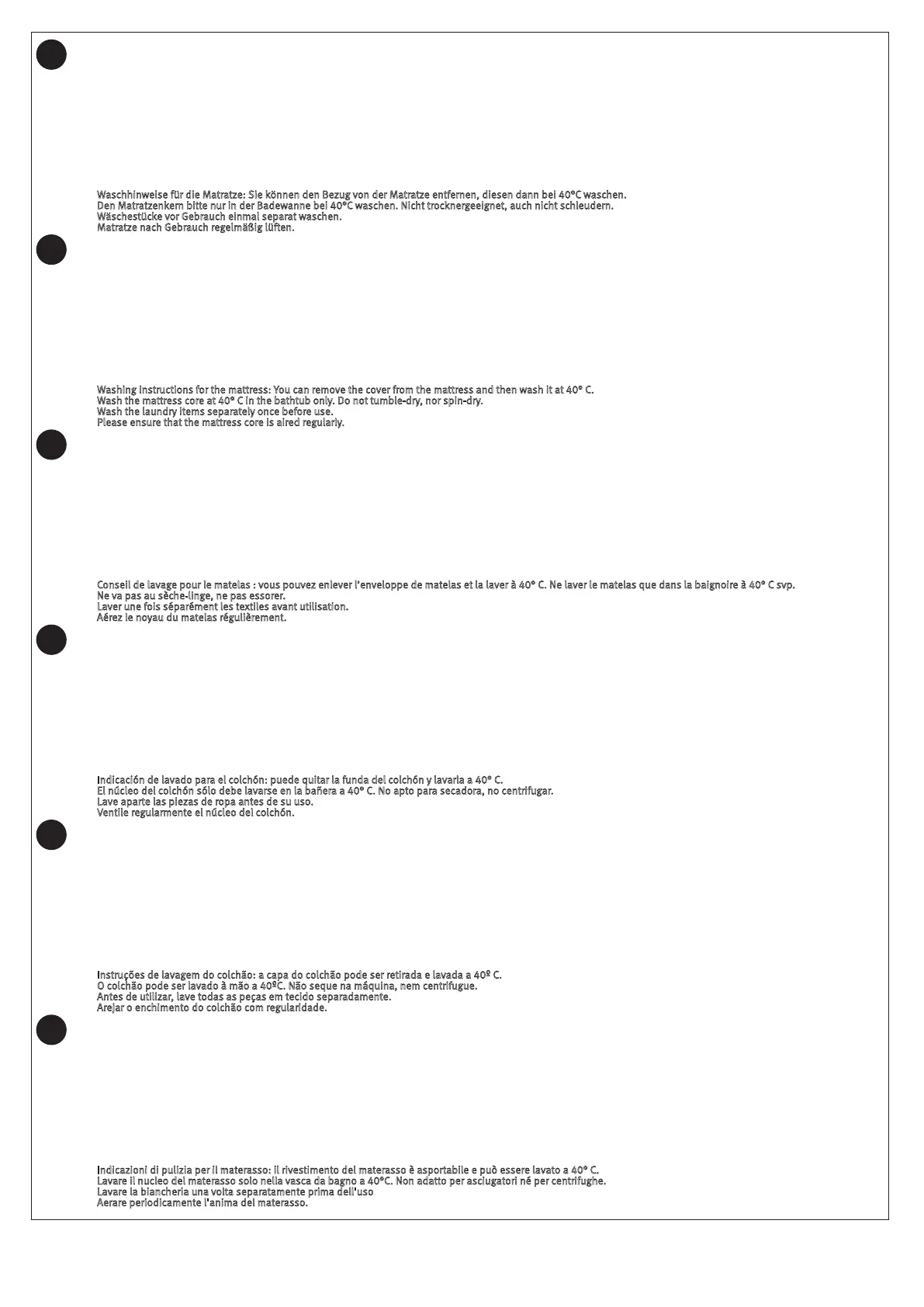 Lavare il nucleo del materasso solo nella vasca da bagno a 40°C. Non adatto per asciugatori né per centrifughe.