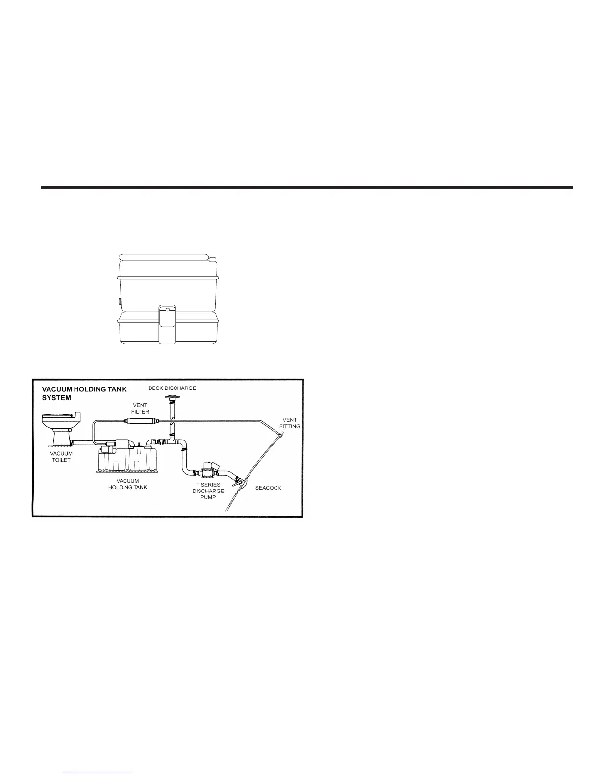 evacuates waste and a vacuum forces the waste to the holding tank.