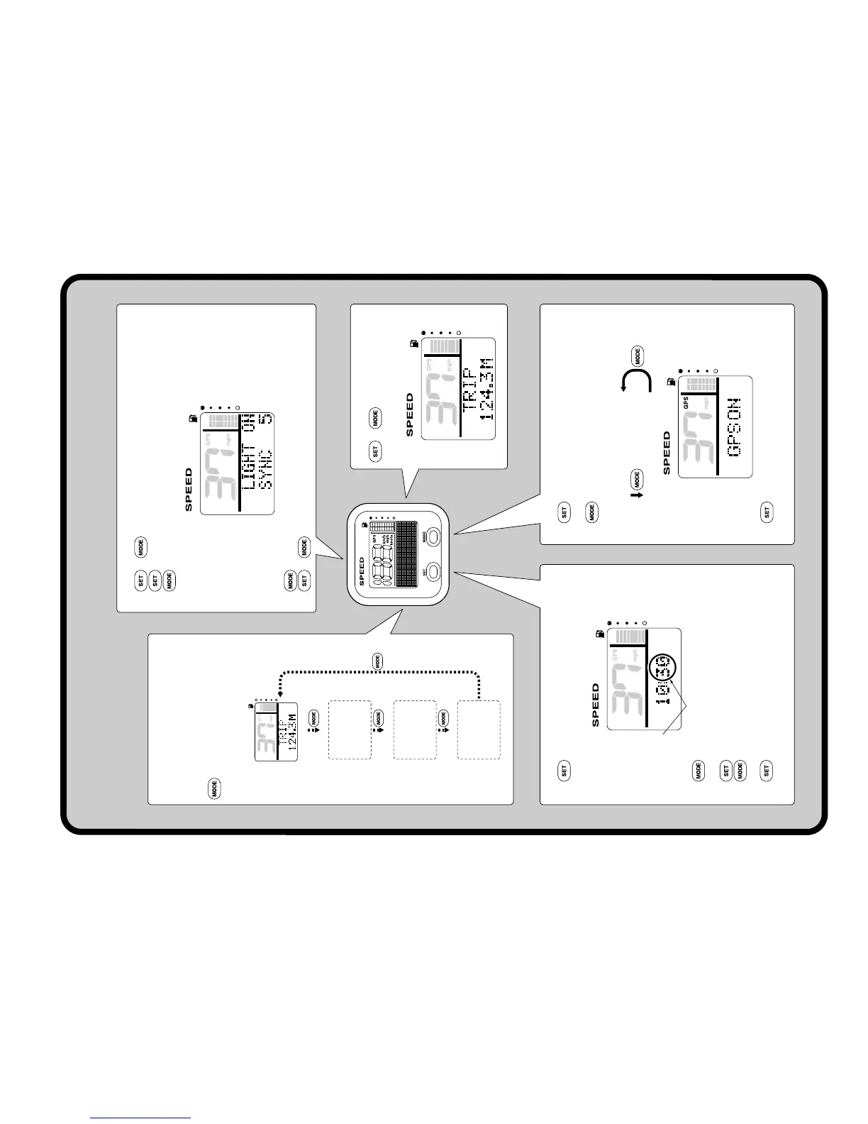 2. : Press to switch between the speed sensor