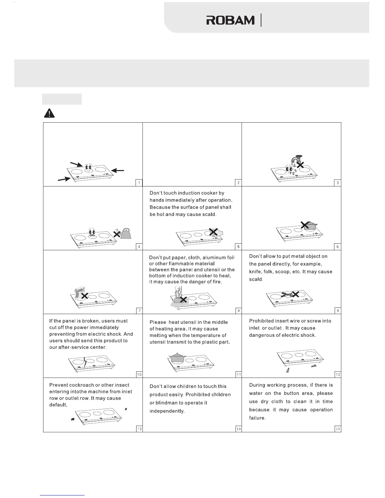 When you operate our multifunction hob, please pay much attention to following notice articles: