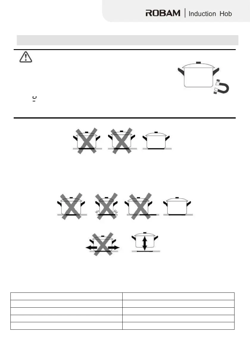 • Cookware made from the following materials is not suitable: pure stainless steel, aluminium or