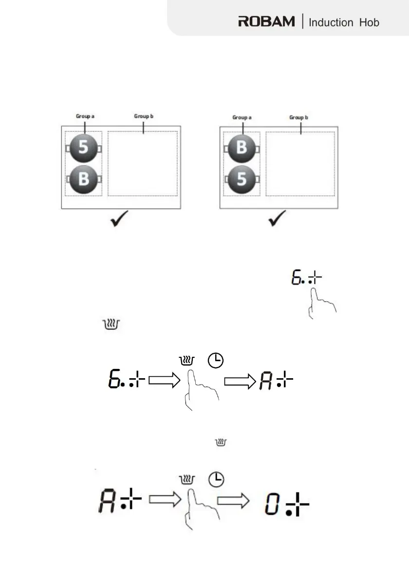 1. Touch the heating zone selection button to select a desired