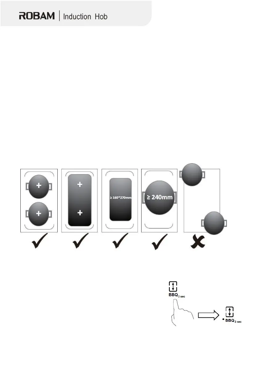 • Important: Make sure to place the cookwares centered on the single cooking zone.