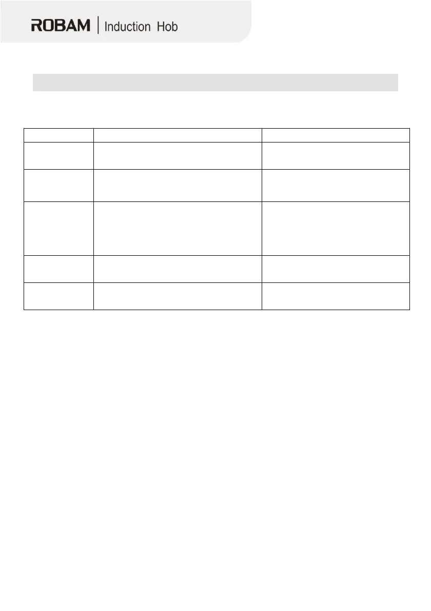If an abnormality comes up, the induction hob will enter the protective state automatically