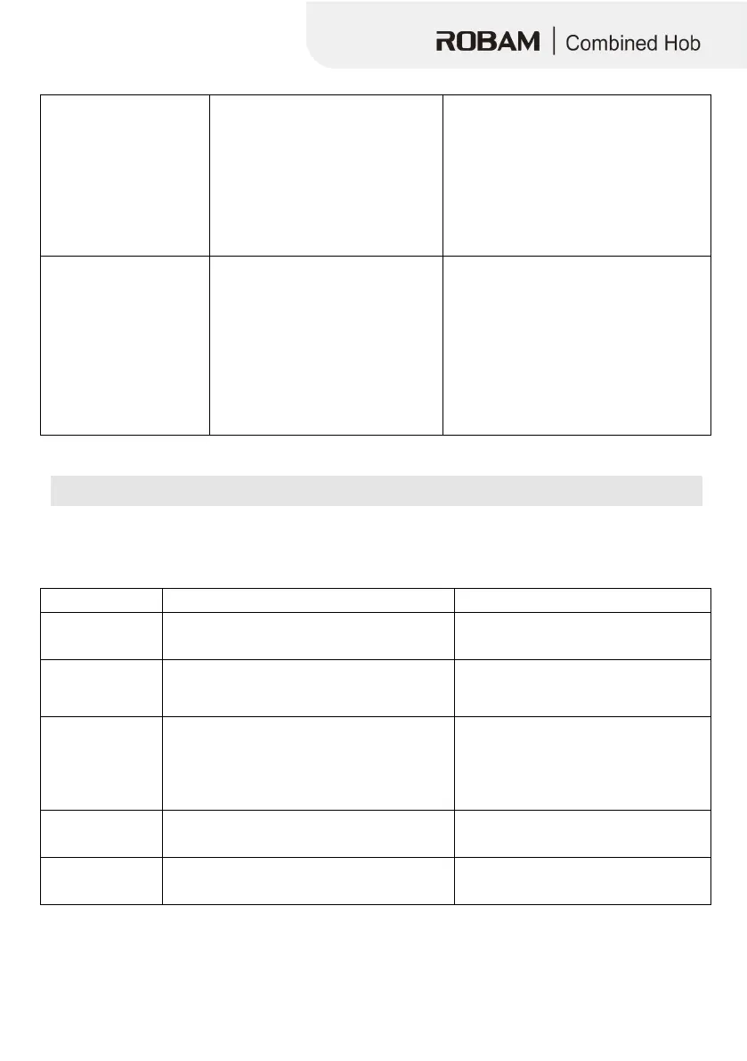 If an abnormality comes up, the induction hob will enter the protective state automatically