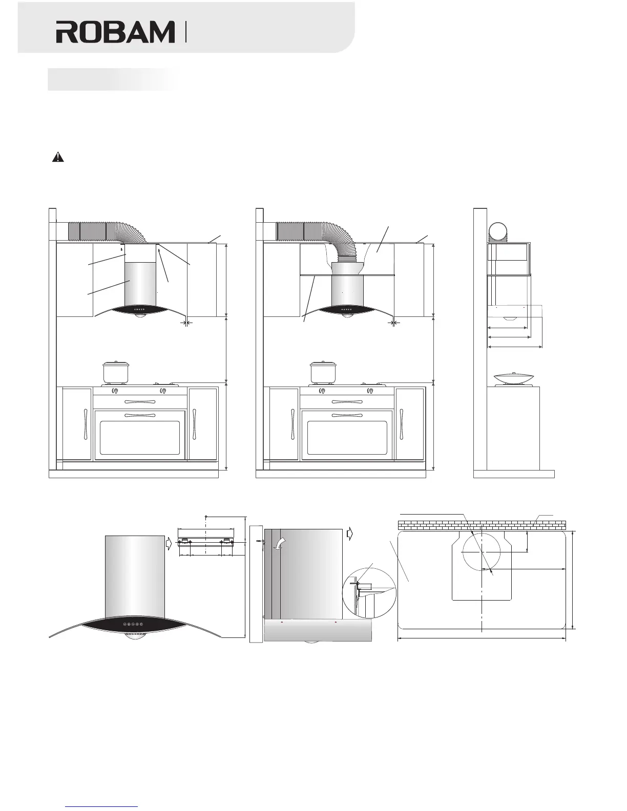 Operator shall install range hood upright the gas hob with recommended lowest height between hood bottom