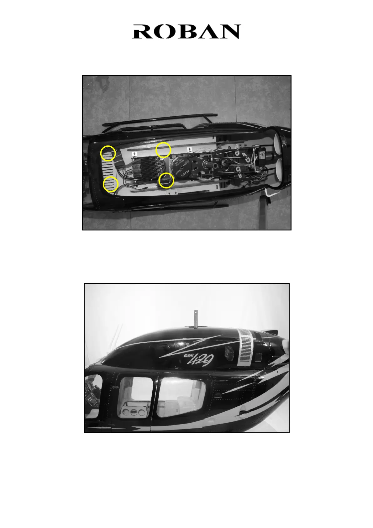 4.20. Then screw down the mechanics into the fuselage at the four points as shown.