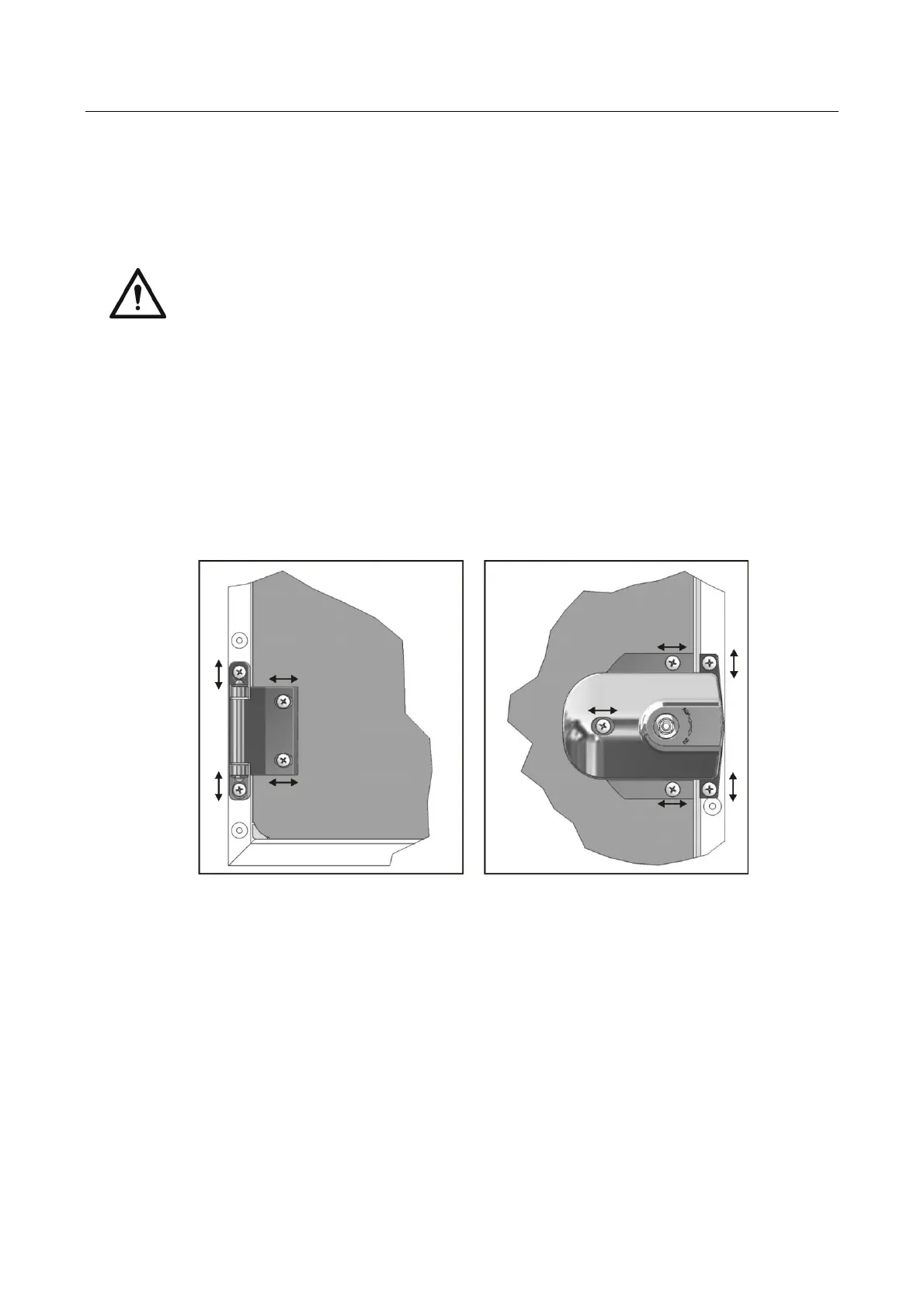 the door leaf, the long holes in the hinge bracket allow horizontal alignment.