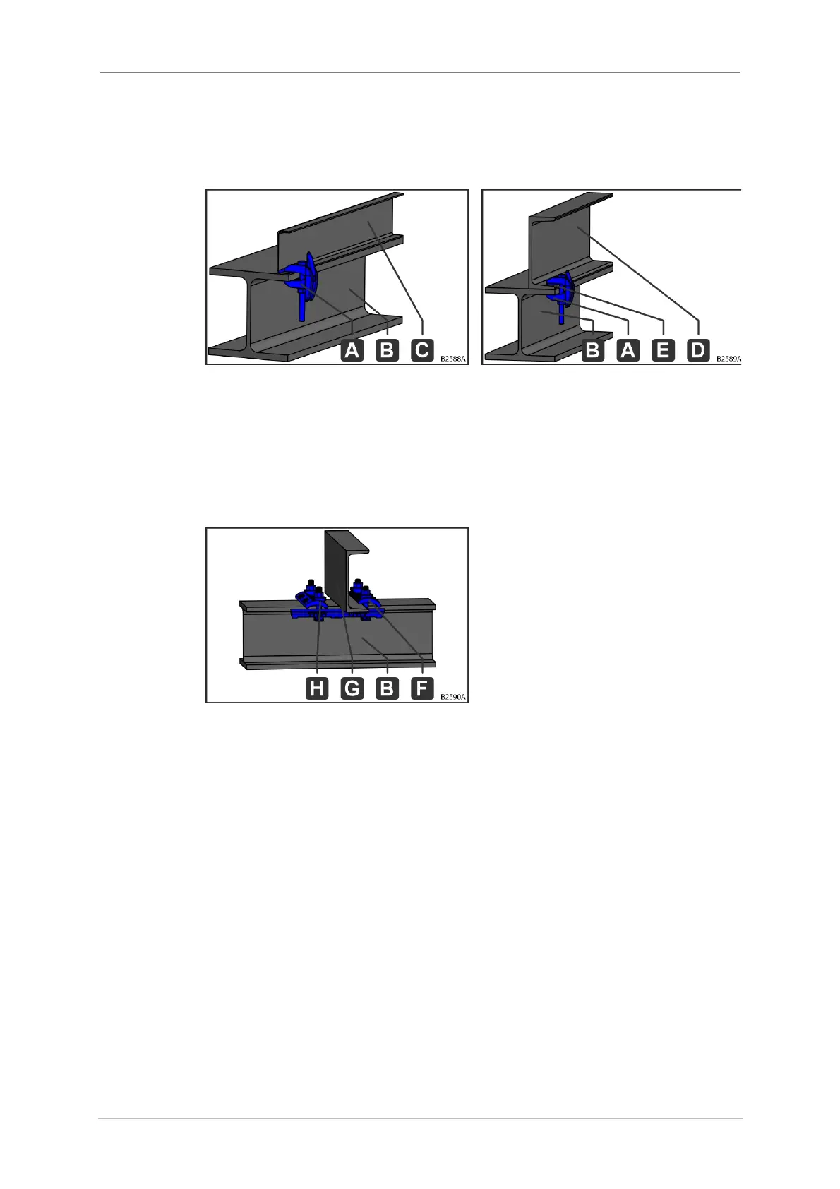 F9 beam clamps (A) are recommended for fastening AHUs with on-site longitudinal
