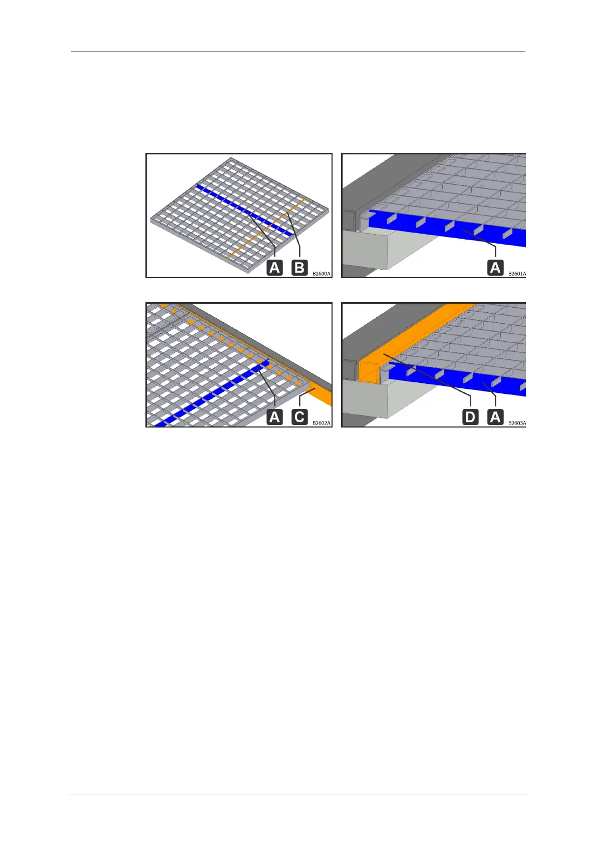 All supporting rods (A) of the individual grating elements must rest on a load-bearing substructure
