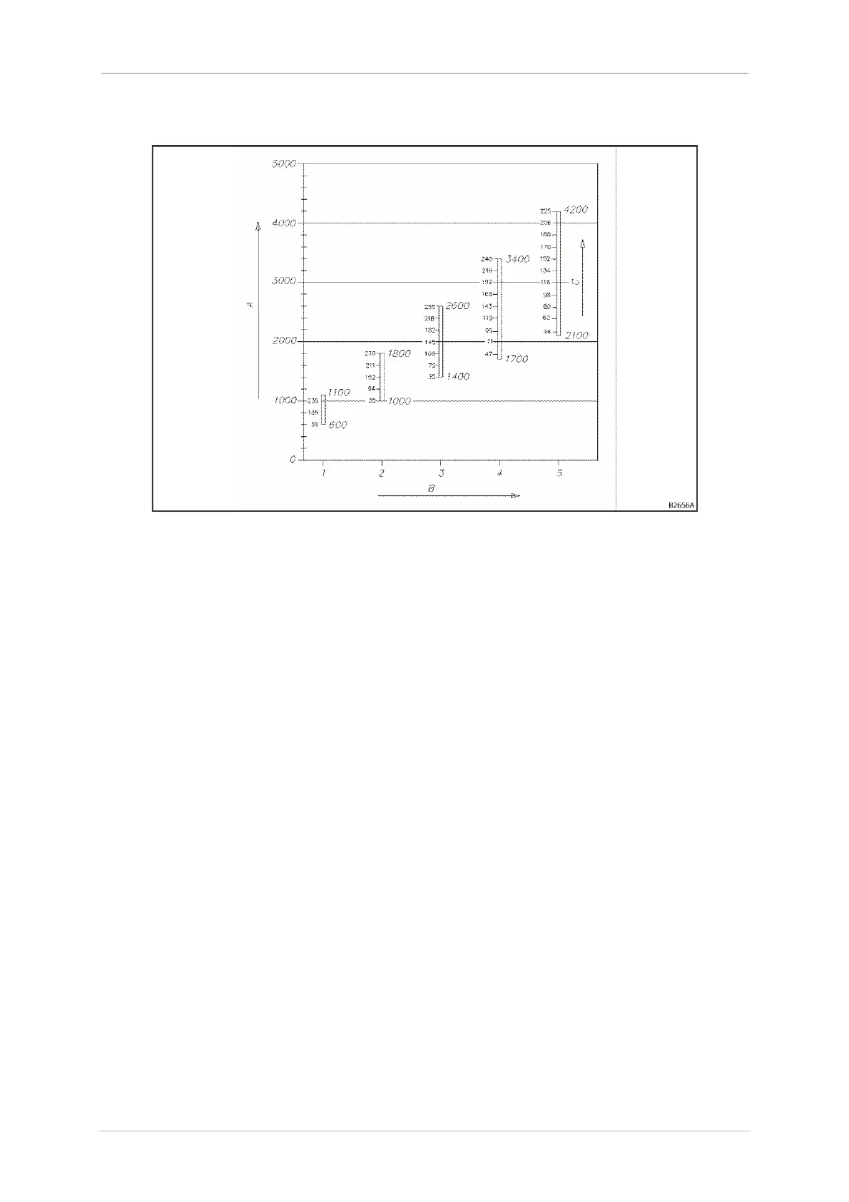 Fig. 125: A - activation pressure [Pa]; B - number of weight plates [pieces]; C - clearance a [mm].