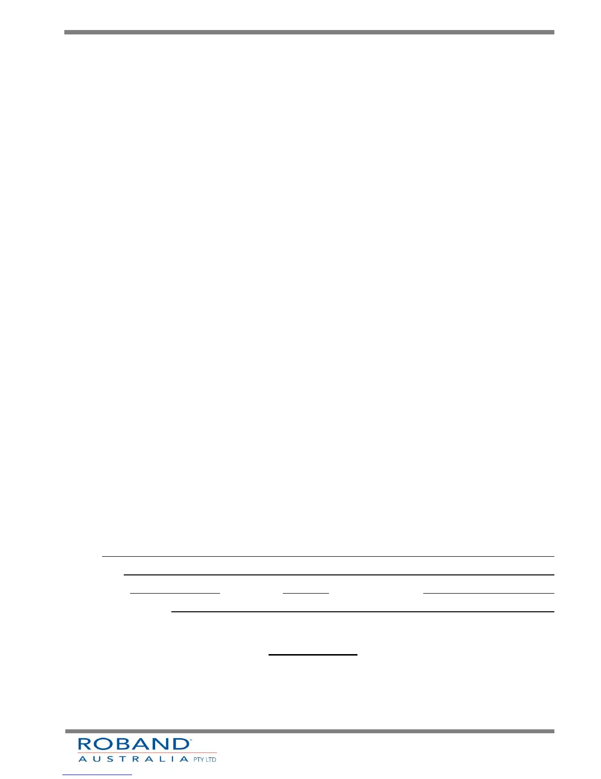 purchase. Roband Australia’s obligations pursuant to this express warranty being limited to the repair or