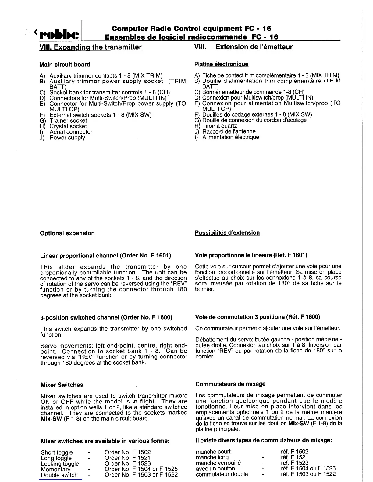 ROBBE-Futaba FC-16 - Description of FC-16; FC-16 Transmitter; FP-R 118 Receiver; FP-R 116 Receiver