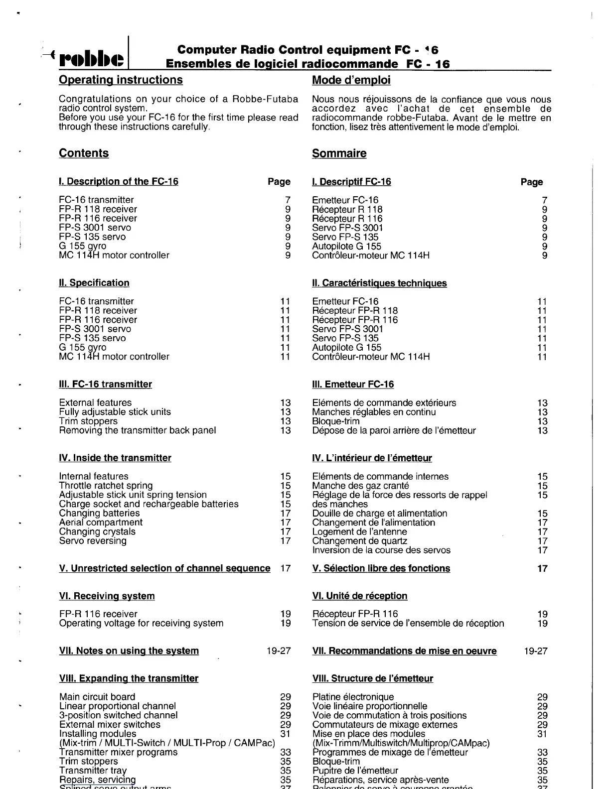 ROBBE-Futaba FC-16 - Contents