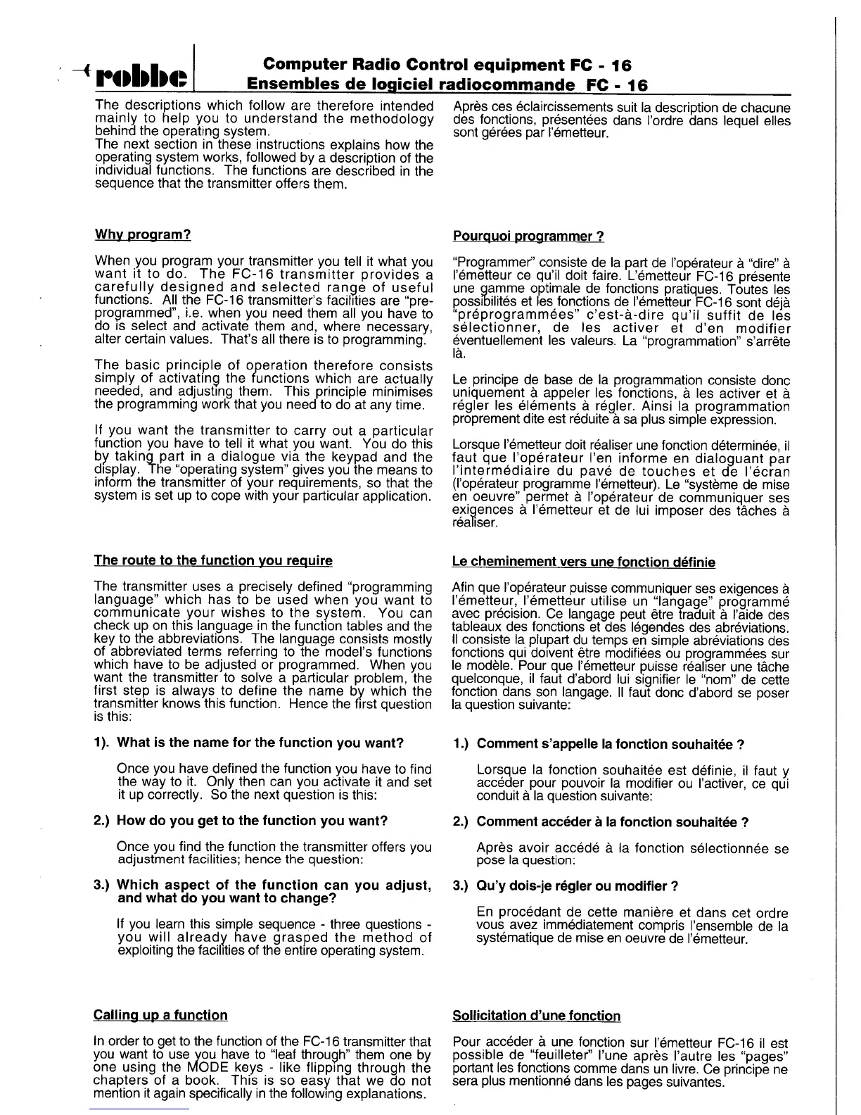 ROBBE-Futaba FC-16 - Why Program?; The Route to the Function You Require; Calling up a Function
