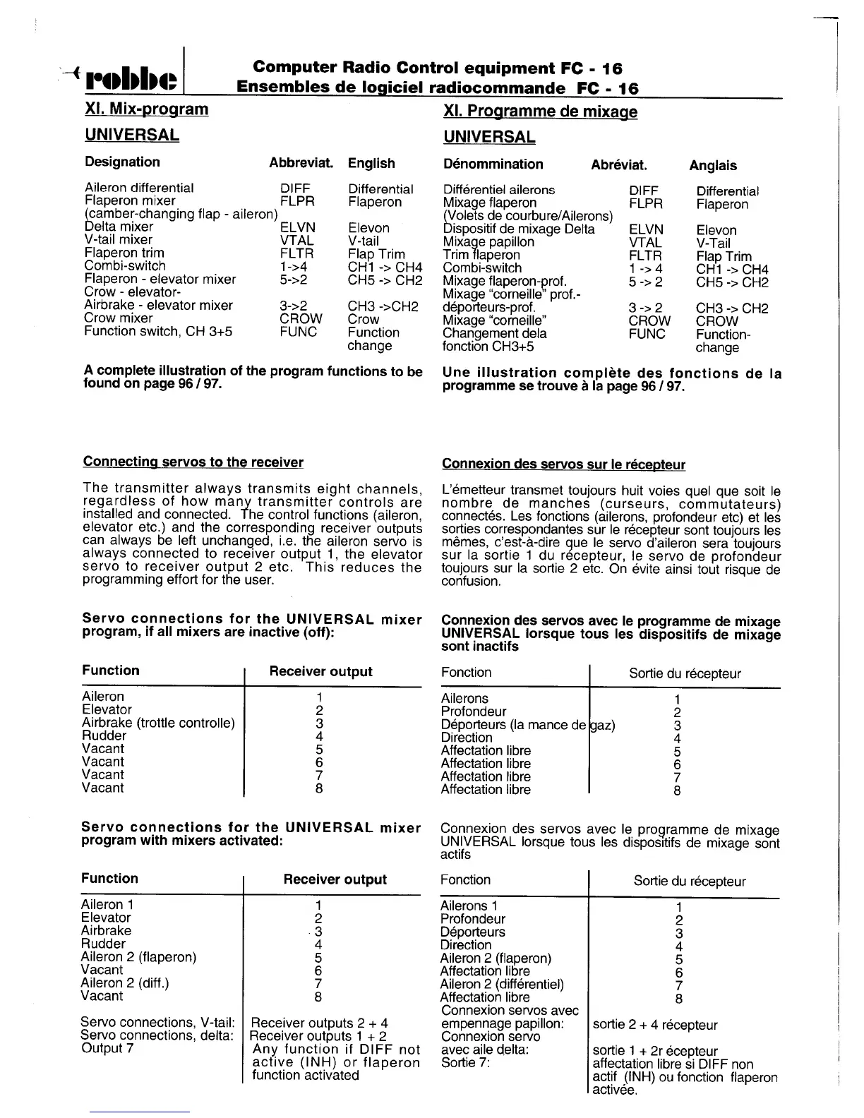 ROBBE-Futaba FC-16 - MIX-Program; Connecting Servos to the Receiver