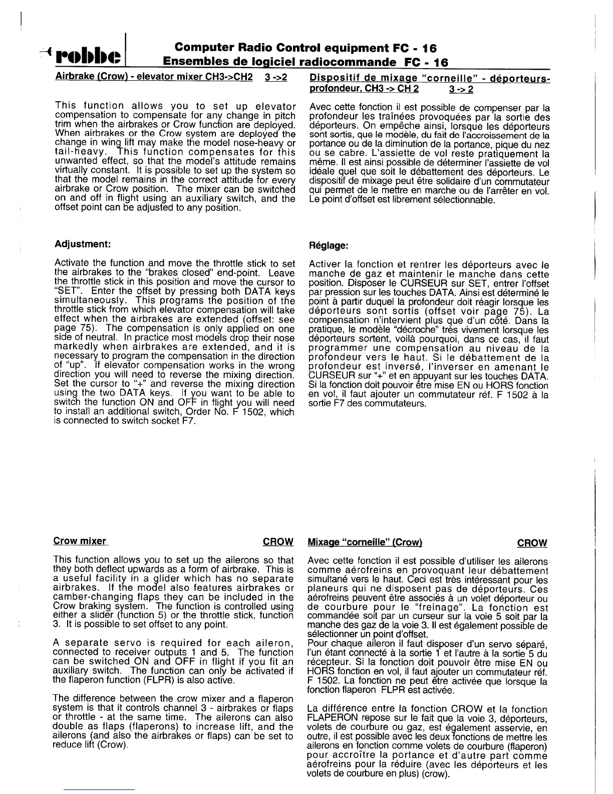 ROBBE-Futaba FC-16 - Airbrake - Elevator Mixer; Crow Mixer
