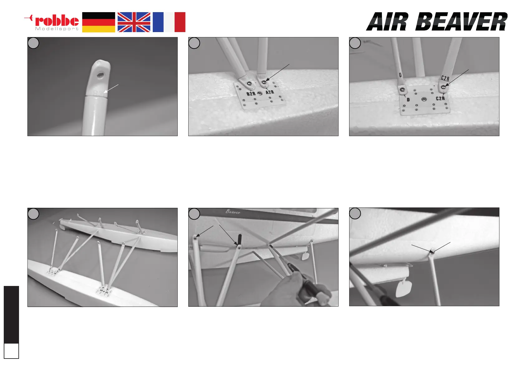 - Attach the support struts to the fuselage using 3 Ø x16 mm