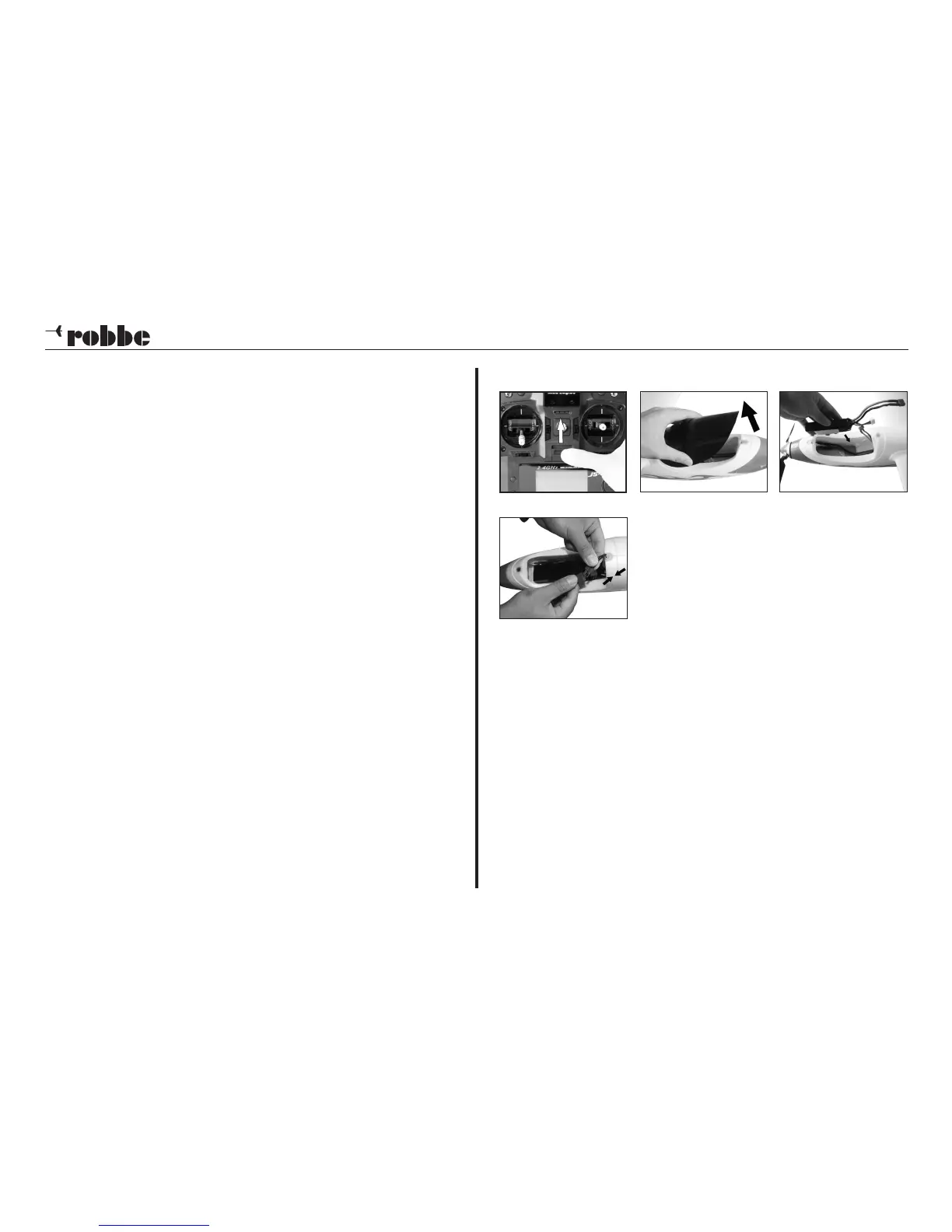 Open the canopy and remove the flight battery. Replace