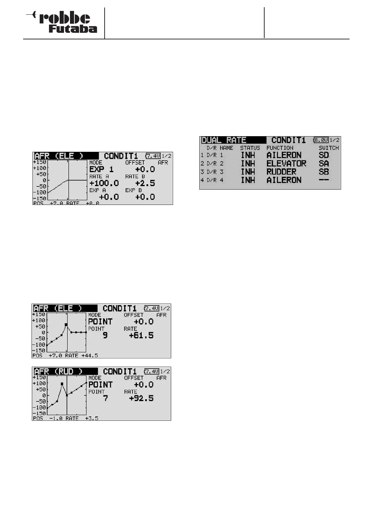 • Up to six different Dual Rate settings can be entered. This