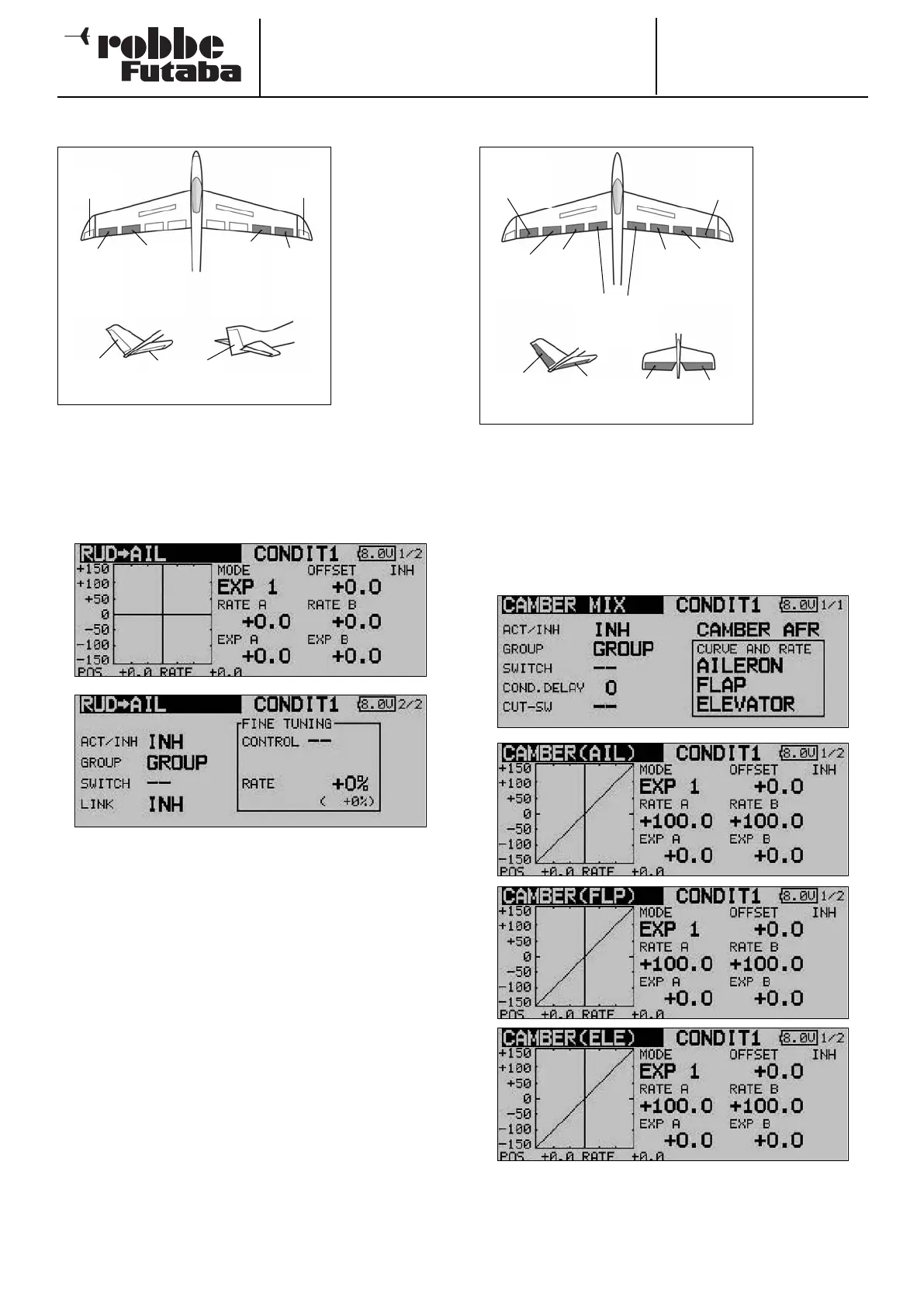 Use the 3-D hot-key to mark the ‘Rudder -> aileron’ mixer in