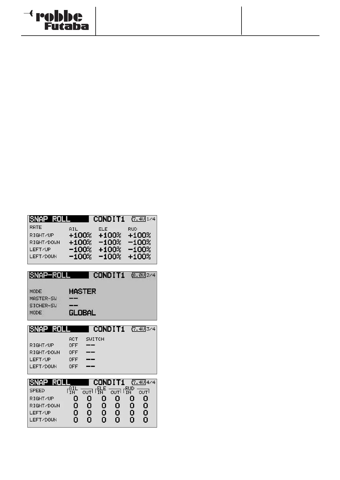 The snap roll function enables you to define transmitter control