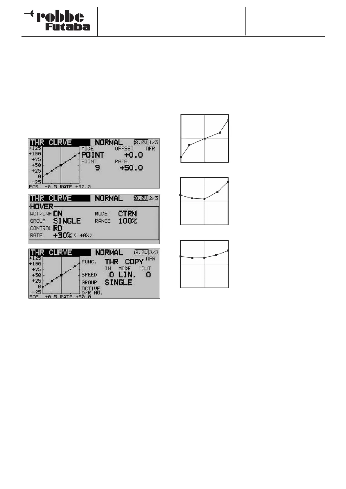 Use the 3-D hot-key to mark the ‘THROTTLE CURVE’ function
