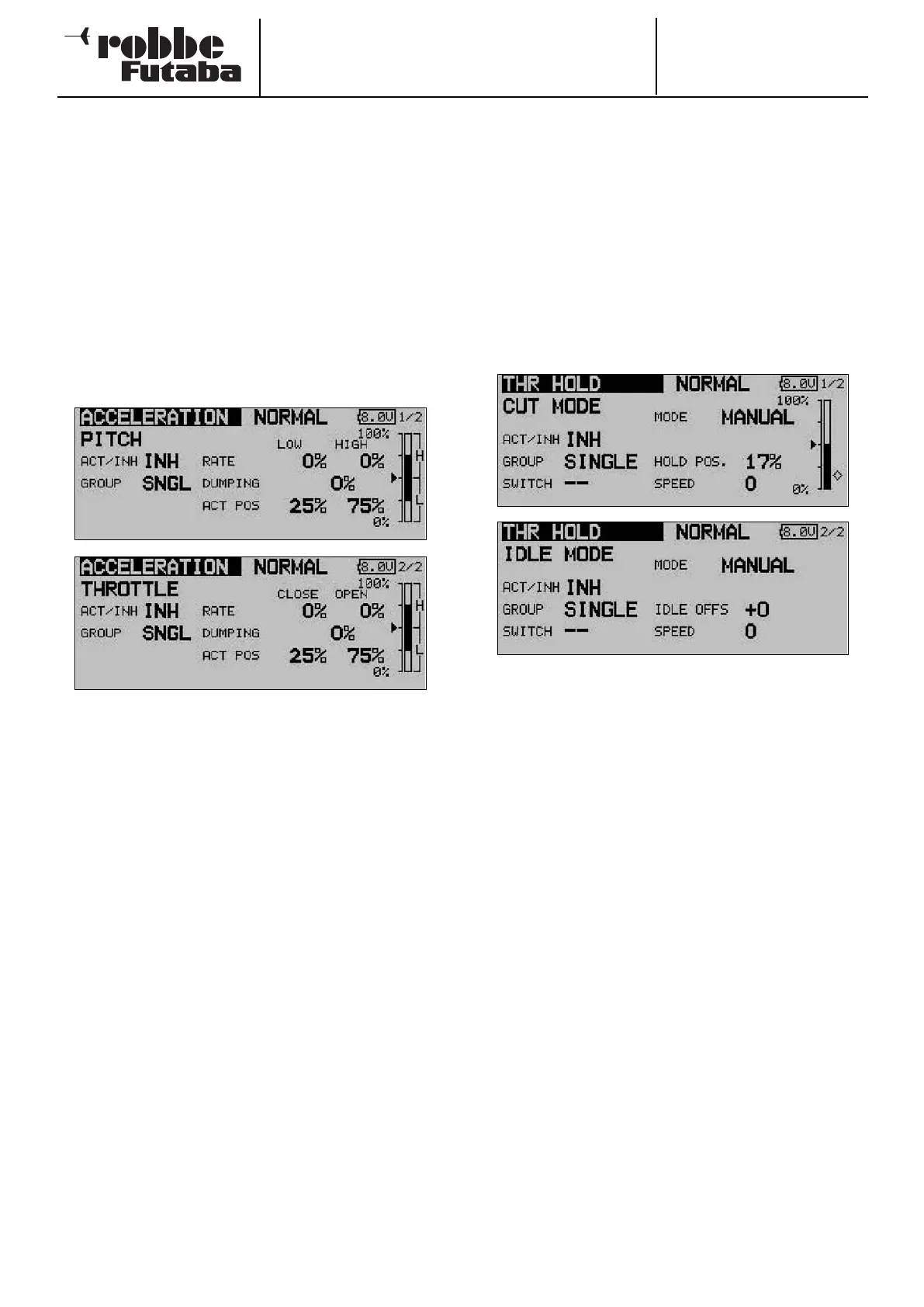 ve pitch and throttle settings. On the first page you enter a set-